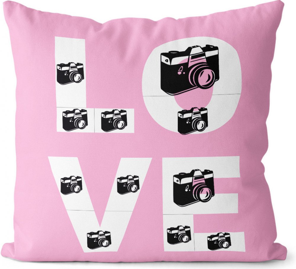 Krásná šablona, do níž můžete vložit a umístit celkem 11 fottografií vždy na každou stranu polštáře. Fotky umisťujete a roztahujete do jednotlivých políček v písmenech nápisu "LOVE." Nezapomeňte své fotky roztáhnout tak ,aby se pokryla celá plocha jednotlivých políček a nápis byl plný a kompletní. Rozměr 40x40cm, tisk z obou stran. Potisk je stálobarevný a otěruvzdorný.