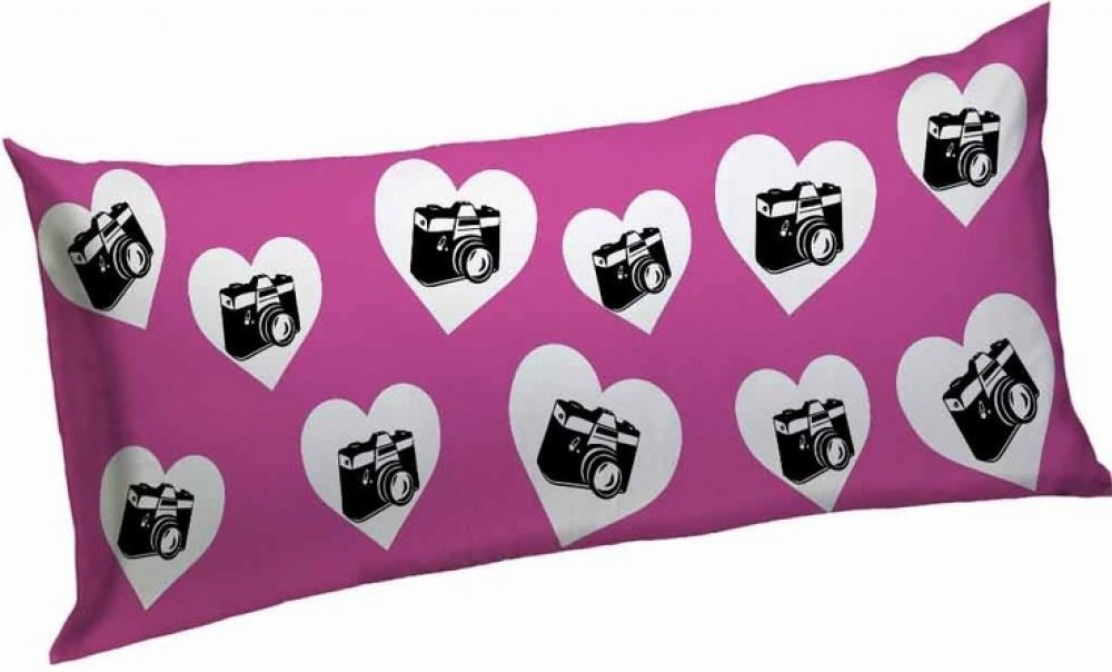 Velký podlouhlý polštář v rozměru 140x50 cm. Šablona nabízí možnost výběru barvy pozadí a nahrání jedenácti fotografií, které umístíte a roztáhnete do vyznačených srdcových rámečků. K dispozici máte obě strany tohoto velkého polštáře, takže můžete použít celkem 22 fotografií. Potisk je stálobarevný a otěruvzdorný.