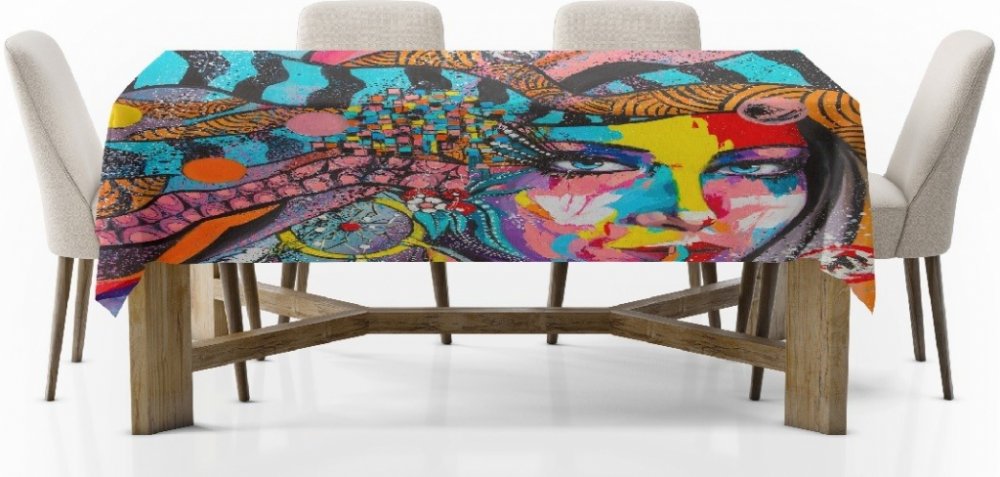 Kvalitní potištěný ubrus, u kterého si můžete vybrat ze tří variant: 85x85, 140x120, 220x130. Případně můžete zvolit svůj rozměr. Princip tisku spočívá v tepelně-chemickém procesu, při kterém se barvivo dostává do struktury vlákna (thermo sublimace). Tisk je velmi odolný a ubrus lze prát na 40°. Nežehlit, nepoužívat aviváž, nesušit v sušičce. Nečistit chemicky. Materiál: mikrofáze.