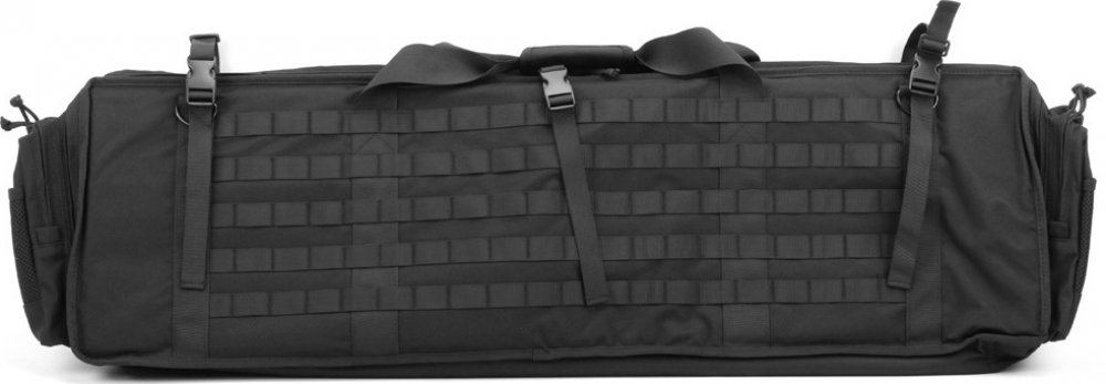 Specialitou tohoto pouzdra je MOLLE vazba na vnější části o rozměrech 69 x 22 cm (18 sloupců). Na tento panel můžete jednoduše připevnit další kapsy nebo sumky.