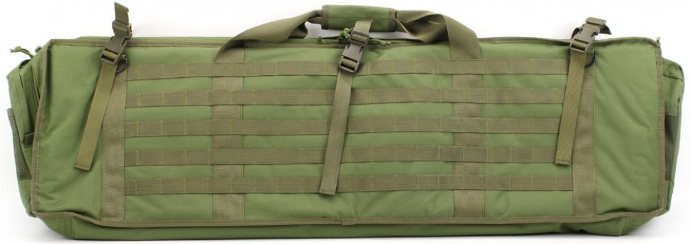 Specialitou tohoto pouzdra je MOLLE vazba na vnější části o rozměrech 69 x 22 cm (18 sloupců). Na tento panel můžete jednoduše připevnit další kapsy nebo sumky.