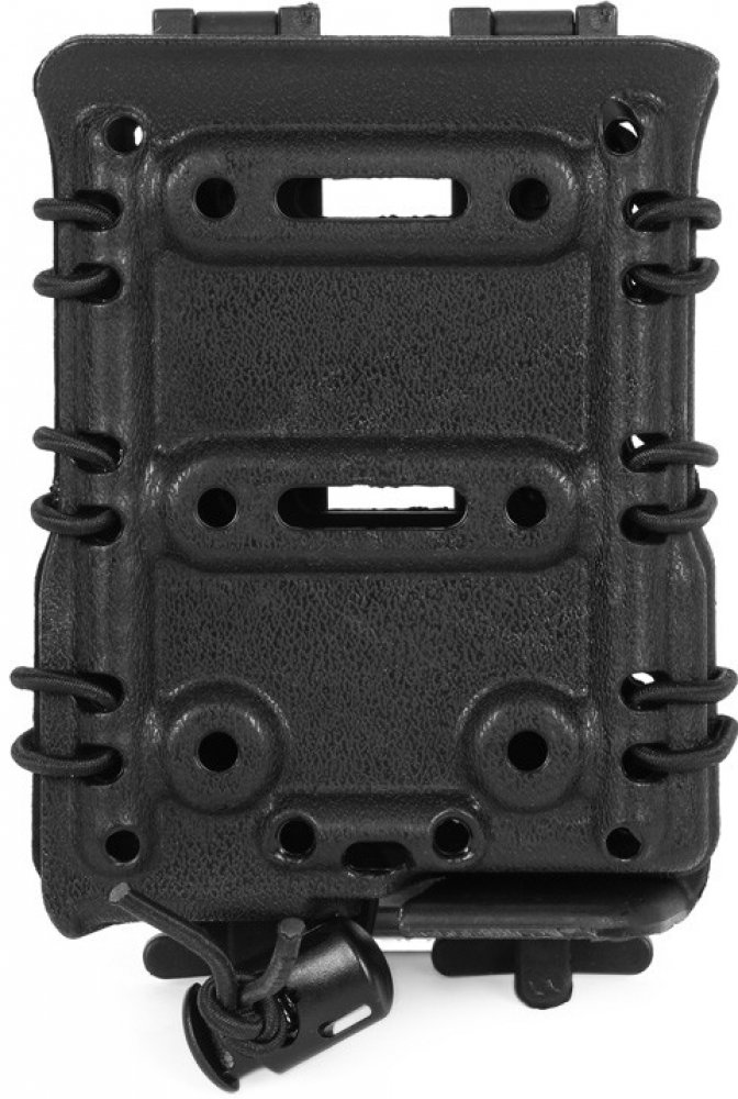 Díky pružné konstrukci zásobník v sumce pevně drží. Určena je pro zásobníky - AK. Stahování je řešeno pomocí pružné šňůrky se stahovací sponou. Tělo a MOLLE zámky jsou vyrobeny z TPR (thermoplastic rubber – termoplastická guma) a nylonu. Ve spodní části sumky jsou otvory pro odvod vody.