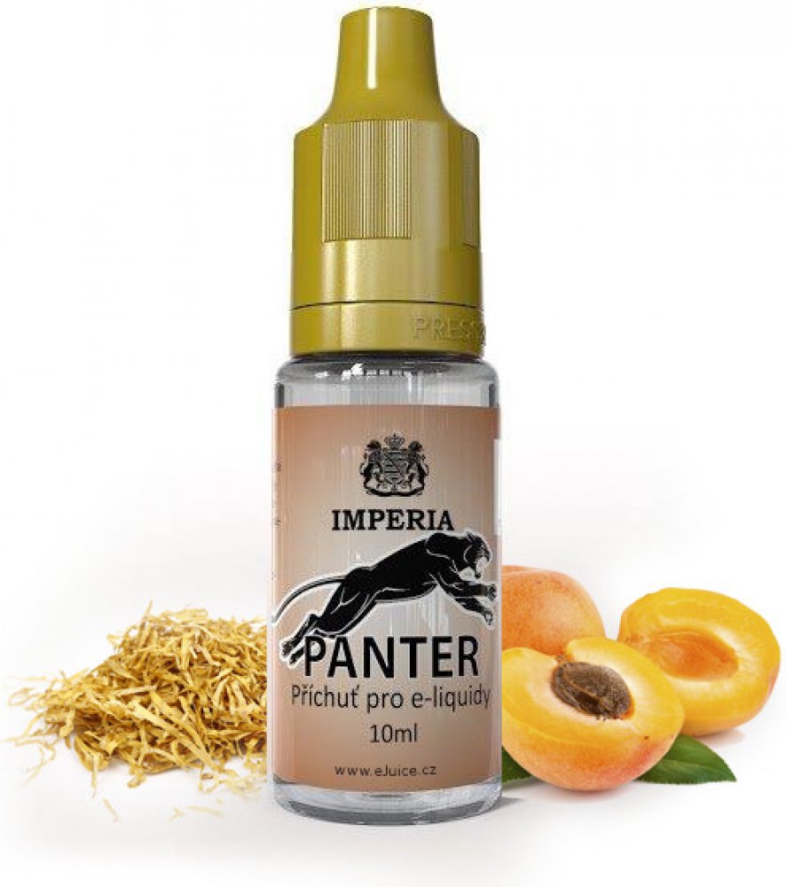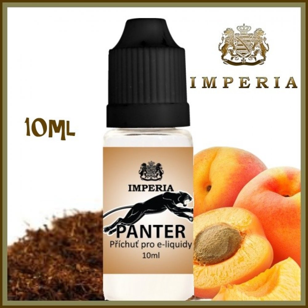 Panter je klasický tabák s meruňkovým nádechem. IMPERIA je ideální příchuť pro tvotbu vlastních liquidů. Výroba probíhá za nejpřísnějších hygienických standardů ve farmaceutické laboratoři v České republice. Jedná se o koncentrát, který se kape do báze. Příchuť může být použita pouze jako aroma do bází....nejedná se o hotový liquid.