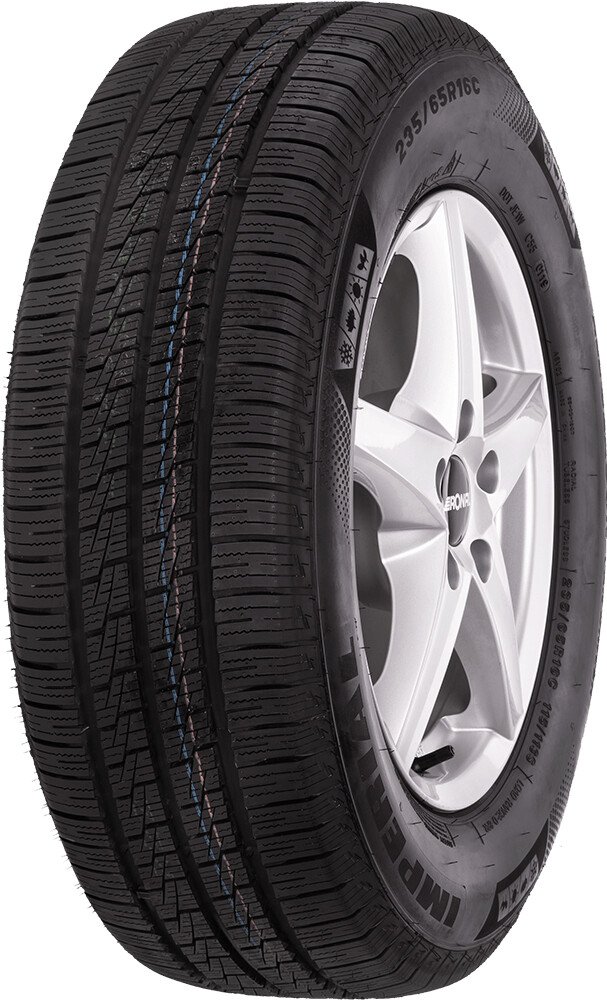 Užitkové pneu Imperial IMPERIAL ALL SEASON VAN DRIVER je novinka roku 2019 v kategorii celoroční pneu pro užitkové a dodávkové vozy, tzv. „céčkové“ pneu. Pneu IMPERIAL ALL SEASON VAN DRIVER má výrazný symetrický dezén, který si poradí s mokrou i zasněženou silnicí. Hlavní předností této pneumatiky je výborná přilnavost v zatáčkách a krátká brzdná dráha. Speciálně upravený vzorek si poradí i s vysokým sněhem v horských oblastech, Vaši dodávku tak nezastaví ani pořádná zima. Potřebujete úspornou ekonomickou pneu za rozumnou cenu? Pak pneu IMPERIAL ALL SEASON VAN DRIVER je přesně pro Vás.