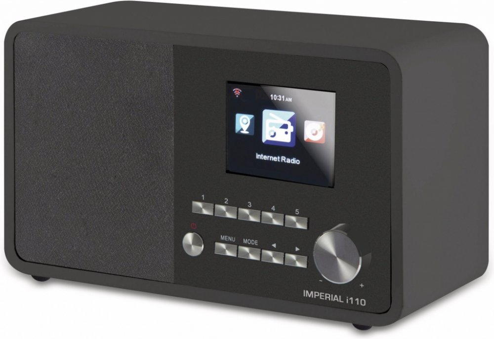 IMPERIAL i110 je internetové rádio se solidními akustickými vlastnostmi a mnoha uživatelsky přívětivými funkcemi. Kromě možnosti přijímat více než 10 000 rozhlasových stanic prostřednictvím WWW má i110 řadu dalších funkcí, které z něj dělají praktického a nekomplikovaného každodenního společníka: velký 2,8'' barevný displej může kromě času a informací o stanicích zobrazovat i nejrůznější užitečné doplňkové služby, jako jsou například aktuální údaje o počasí. Po připojení k domácí síti prostřednictvím integrovaného modulu WLAN přehrává i110 hudební soubory (MP3, AAC nebo WMA) z pevných disků NAS nebo počítačových disků prostřednictvím protokolu UPnP; může také přehrávat hudbu z datových nosičů připojených přes USB. Funkce, jako je funkce budíku s režimem snooze, vícejazyčná navigace v menu nebo časovač spánku, jakož i volitelné ovládání prostřednictvím chytrého telefonu pomocí aplikace, doplňují portfolio funkcí internetového rádia a činí z IMPERIAL i110 ideálního společníka pro každý den. Imperial i110 schwarz