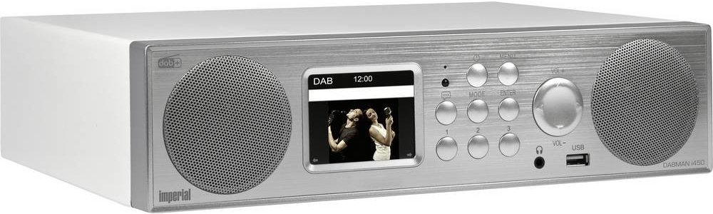 Dabman i450 bílá a stříbrná Internetové rádio·DAB+ a FM·Aplikace AirMusic Control IMPERIAL DABMAN i450·Možnost přišroubování teleskopické antény (70 cm)·Drátová anténa·Dálkové ovládání (vč. baterií)·Příslušenství pro spodní montáž·Napájecí zdroj