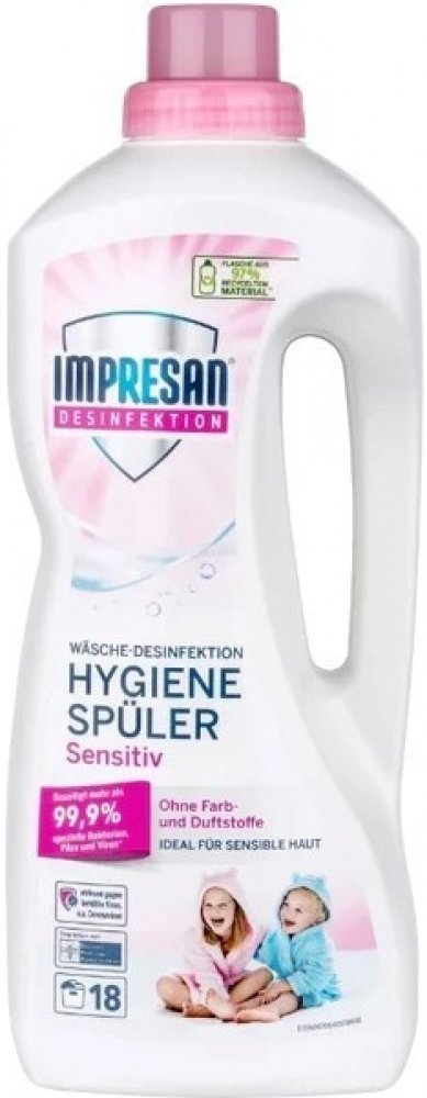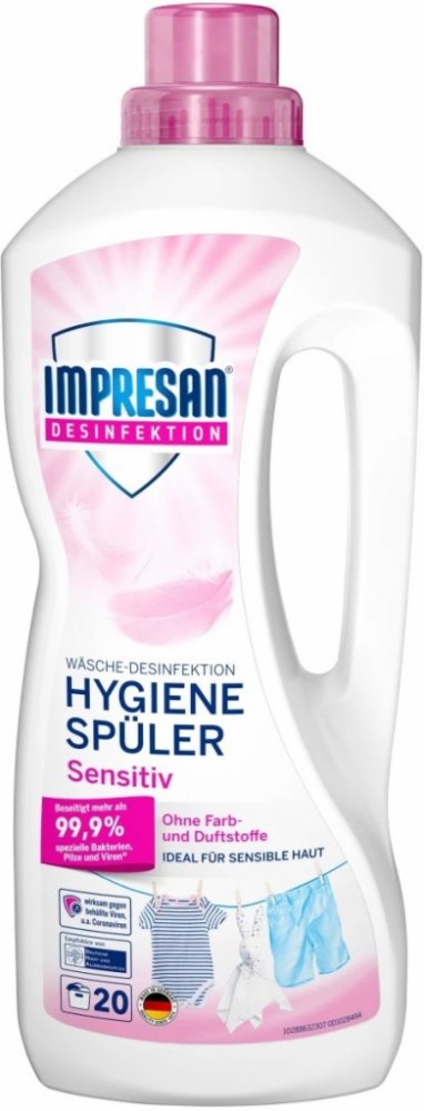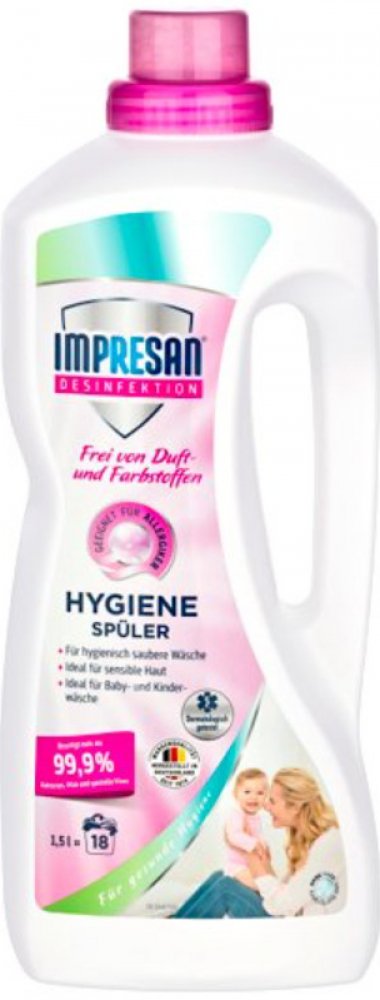 Pro hygienicky čisté prádlo, odstraňuje 99,99% bakterií. Vhodné pro osoby s citlivou pokožku dětí atd. Bez vůní a barviv. Čistí prádlo a odstraňuje více než 99,9% bakterií, hub a speciálních virů. Chrání před nákazou a infekcí kožními houbami a bakteriemi, které mohou být přenášeny během běžného praní. Dermatologicky testováno. Objem: 1500 ml (18 pracích dávek). Dovoz: Německo.POUŽITÍ: Používejte na závěrečné máchání prádla pracího cyklu pračky. Po použití vždy důkladně uzavřete. SLOŽENÍ: viz složení na obale. UPOZORNĚNÍ: Uchovávejte mimo dosah dětí. Zamezte styku s očima. Při zasažení očí důkladně vypláchněte vodou. Přípravek nepolykejte. Při požití vyhledejte léka