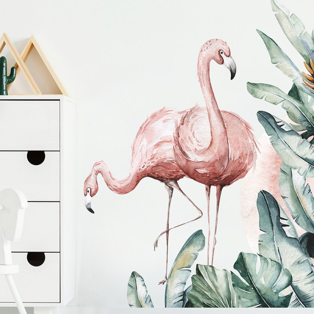 Impresi Samolepka do dětského pokoje Plameňáci a palmové listy - 90x30cm 2ks