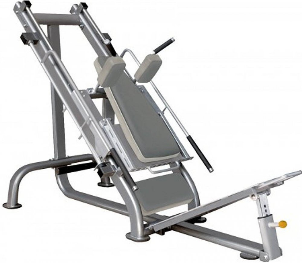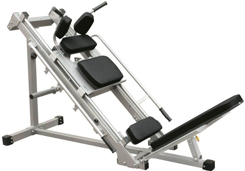 Stroj vytvořen pro celkové procvičení nohou při maximálním komfortu. Je velice praktický do menších místností z důvodu úspory místa. Může se využít také na trénink lýtkových svalů. Úhlově polohovací opěra nohou a madla pro větší stabilitu. Snadné přepínání z leg pressu do hack dřepu.