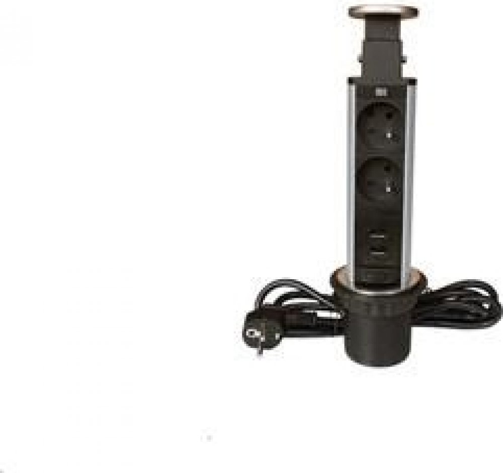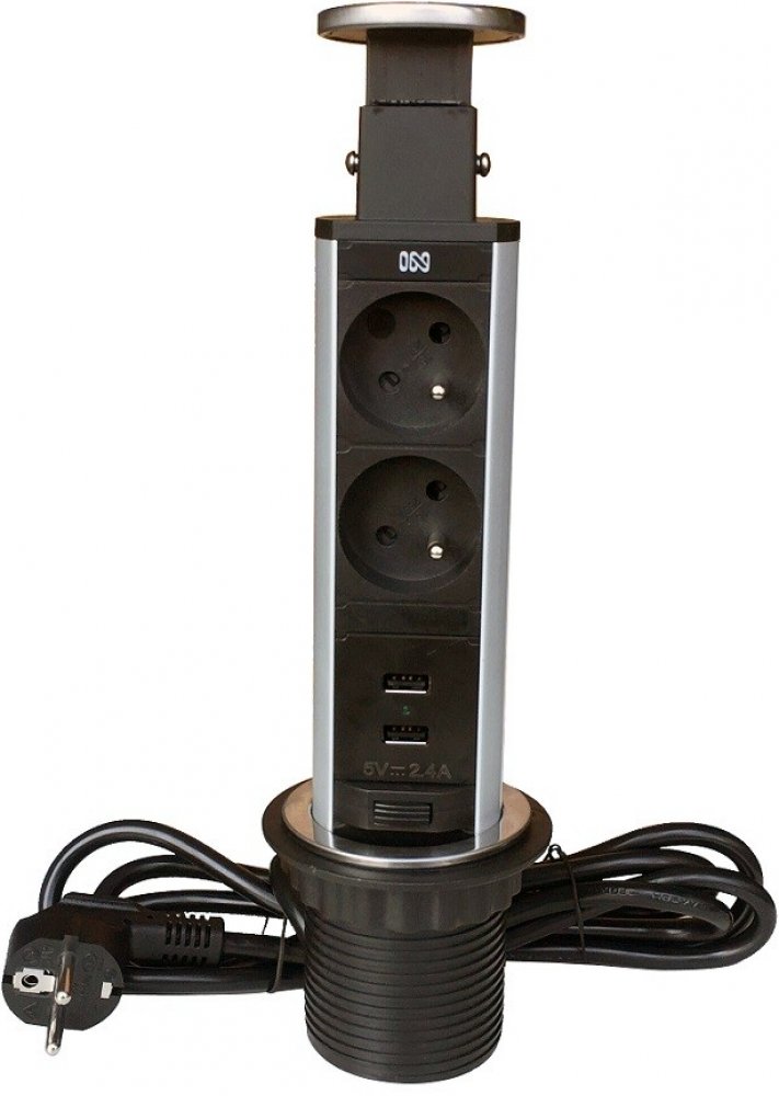 Tato výsuvná zásuvková lišta je určena pro montáž do kancelářských stolů, kuchyňských linek apod.Uplatní se všude tam, kde je nutné skrýt kabely a mít rychlý a pohodlný přístup k elektrickým zásuvkám.Instalace je jednoduchá stačí vyvrtat otvor o průměru 6 cm děrovací pilou.Tento blok má 2 zásuvky a 2 USB výstupy.Posouvá se svisle až do zacvaknutí bezpečnostní pojistky, která brání samovolnému zasunutí lišty. Blok má gumové těsnění.Tělo výrobku je vyrobeno z odolného plastu a hliníku, kryt je z chromu.Přívodní kabel má délku 2 m.Min.doporučená hloubka pro montáž: 28cm. Technická charakteristika:2x zásuvky 2P+T,2x USB výstup 5V 2,4A,16A, 230V~ MAX 3680W,kabel: 1.5mm2, 2m