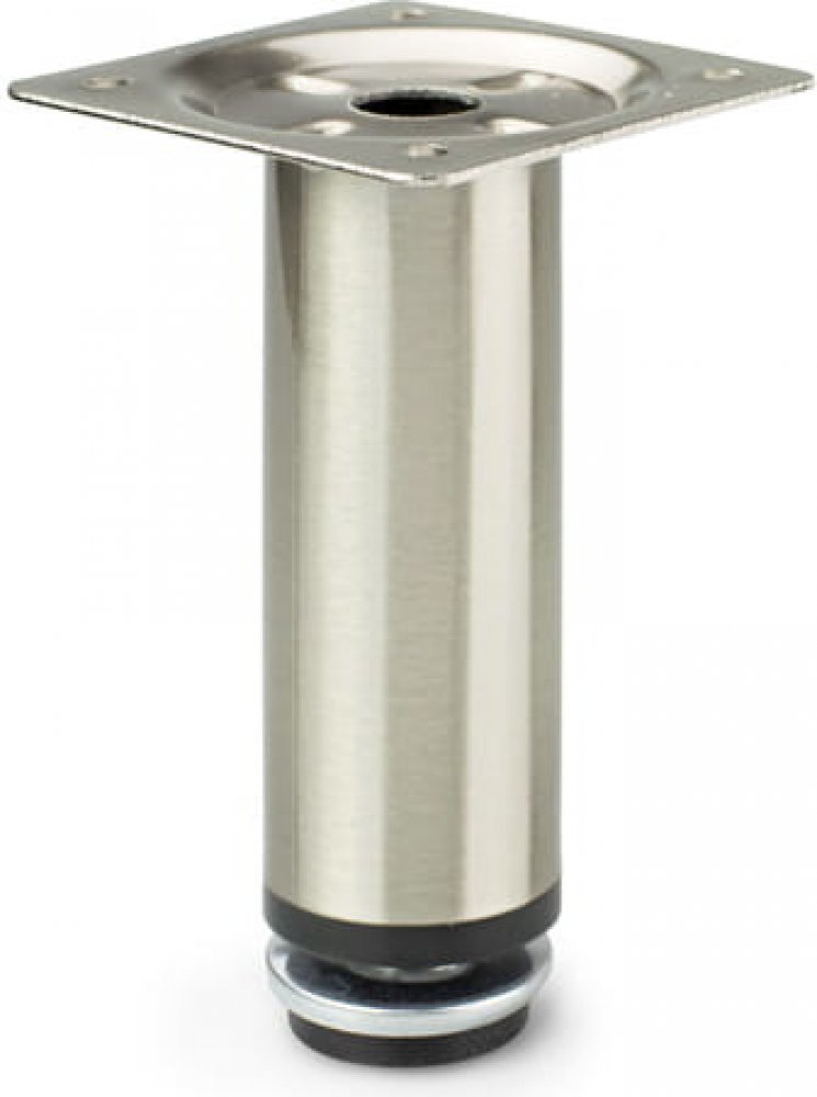 Kulatá nábytková ocelová nožka s nerezovou povrchovou úpravou. S plotničkou a rektifikací + 10 mm.
