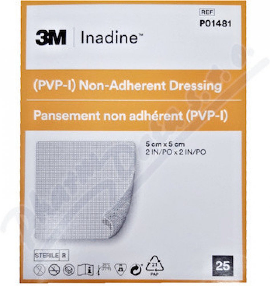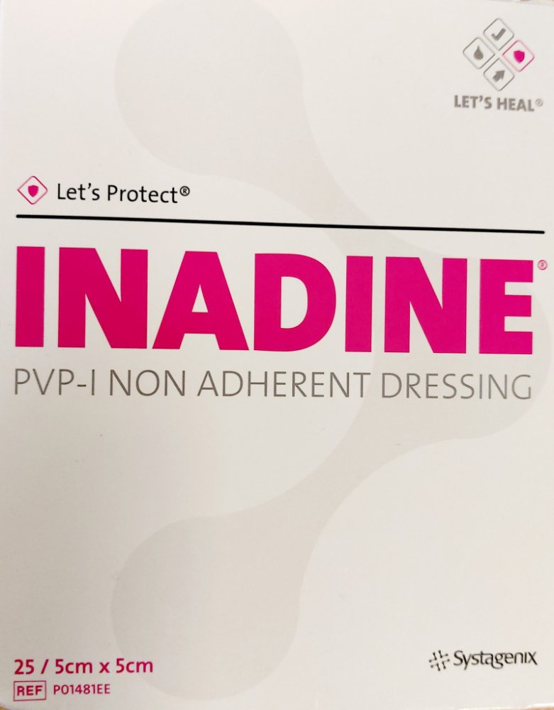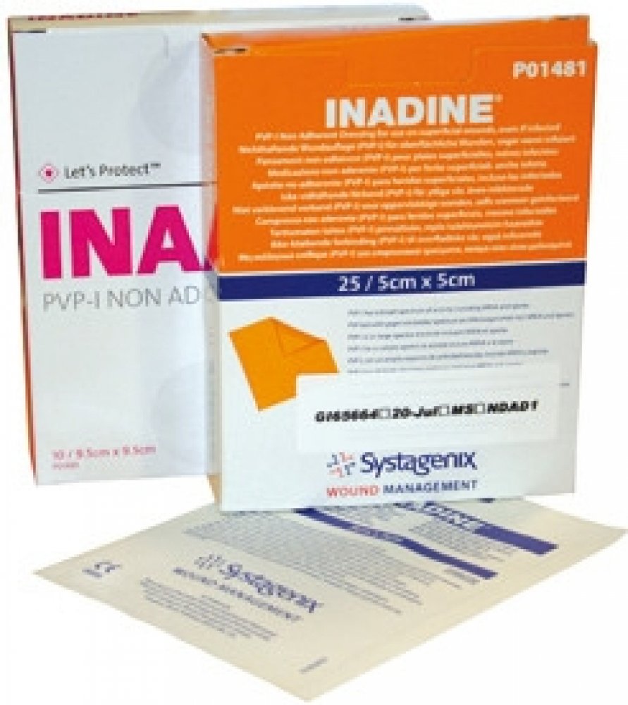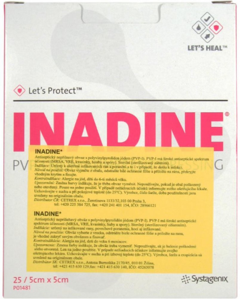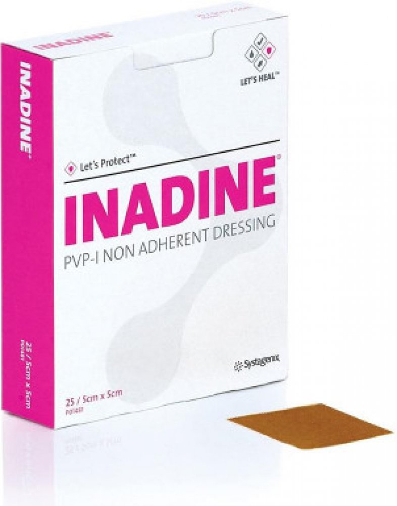 Inadine PVP-I je neadherentní obvaz - nepřilnavá mřížka impregnovaná jodovou antiseptickou látkou k vlhkému krytí a používá se při léčbě drobných popálenin, bércových vředů, proleženin, diabetické nohy a dalších ran akutních i chronických.