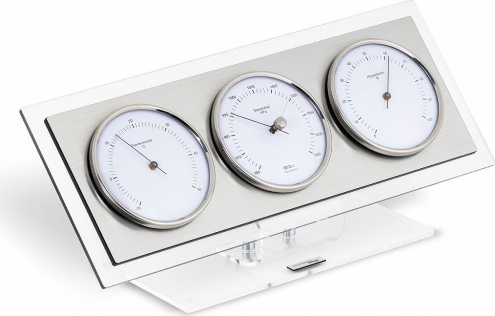 Luxusní designová stolní meteostanice - teploměr, barometr, vlhkoměr.