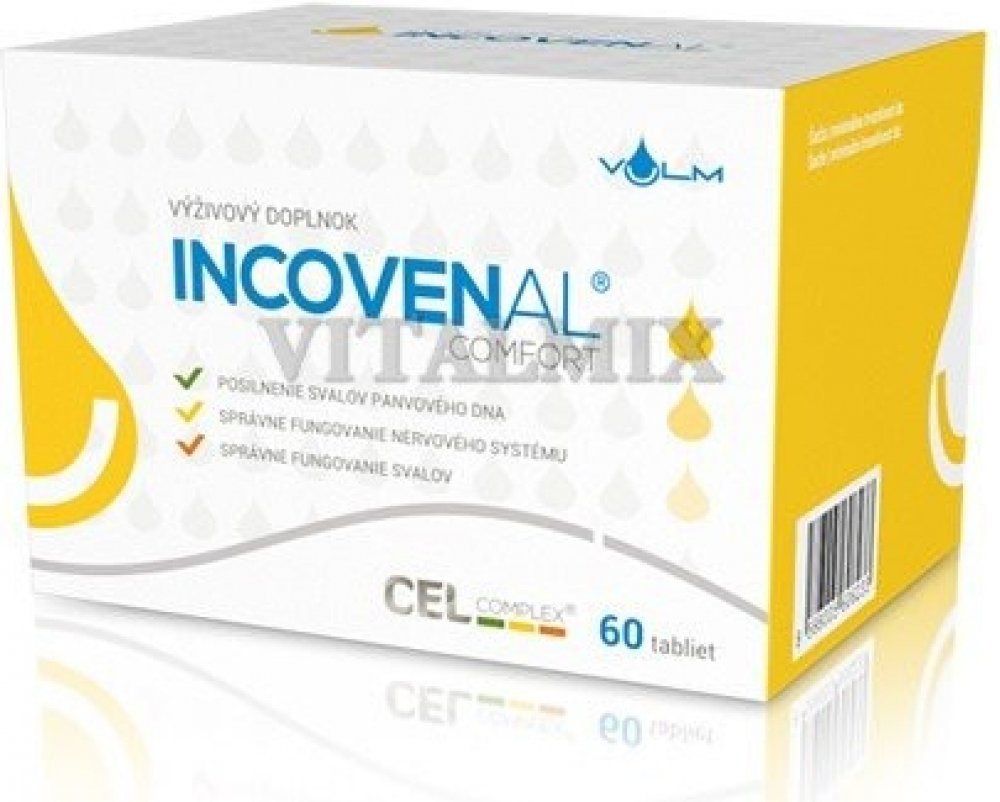Doplněk stravy INCOVENAL® COMFORT je první nehormonální tabletka s unikátním složením účinných látek jako jsou CEL complex, vitamin D3, hořčík a vitamin C. Len setý, který je významnou složkou CEL complexu, přispívá k posílení svalů pánevního dna, jejichž ochabnutí je častou příčinou nedobrovolného úniku moči.