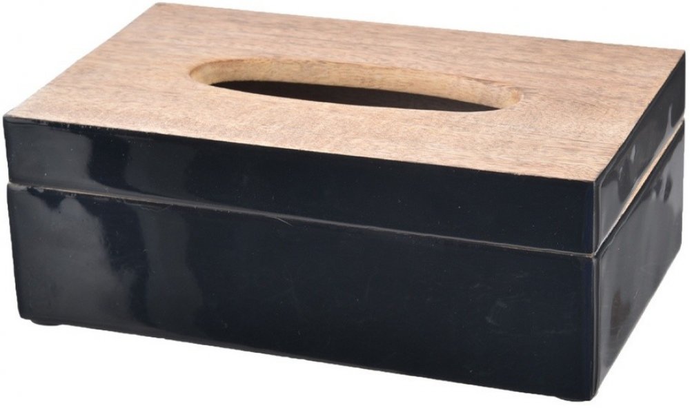 Praktická krabička na papírové kapesníčky bude skvělým doplňkem vaší domácnosti. Box je vyroben z černého plechu a mangového dřeva, které vyniká svou tvrdostí.