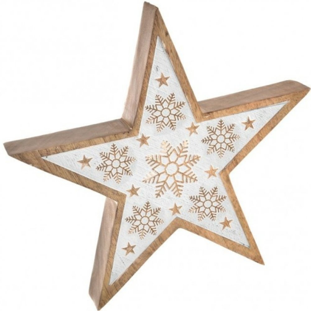 InDecor Vánoční hvězda z mangového dřeva White 25 x 4 x 25 cm
