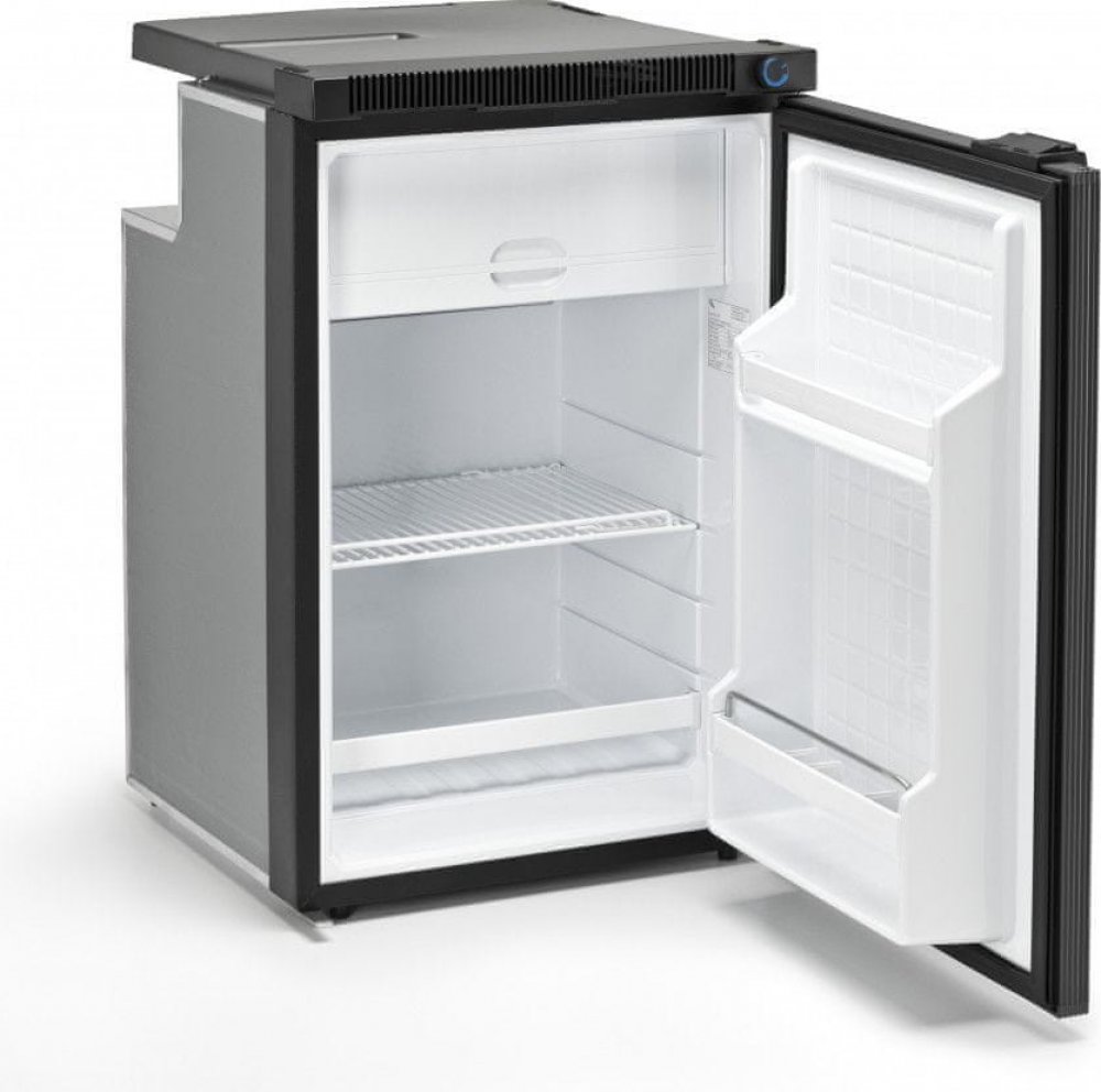 Lednička o objemu 100 litrů s kompresorem SECOP BD35F (dříve Danfoss) 12/24V s nuceným chlazením, chladničku tak lze umístit i do malého prostoru, chlazení kompresoru obstarává ventilátor.
