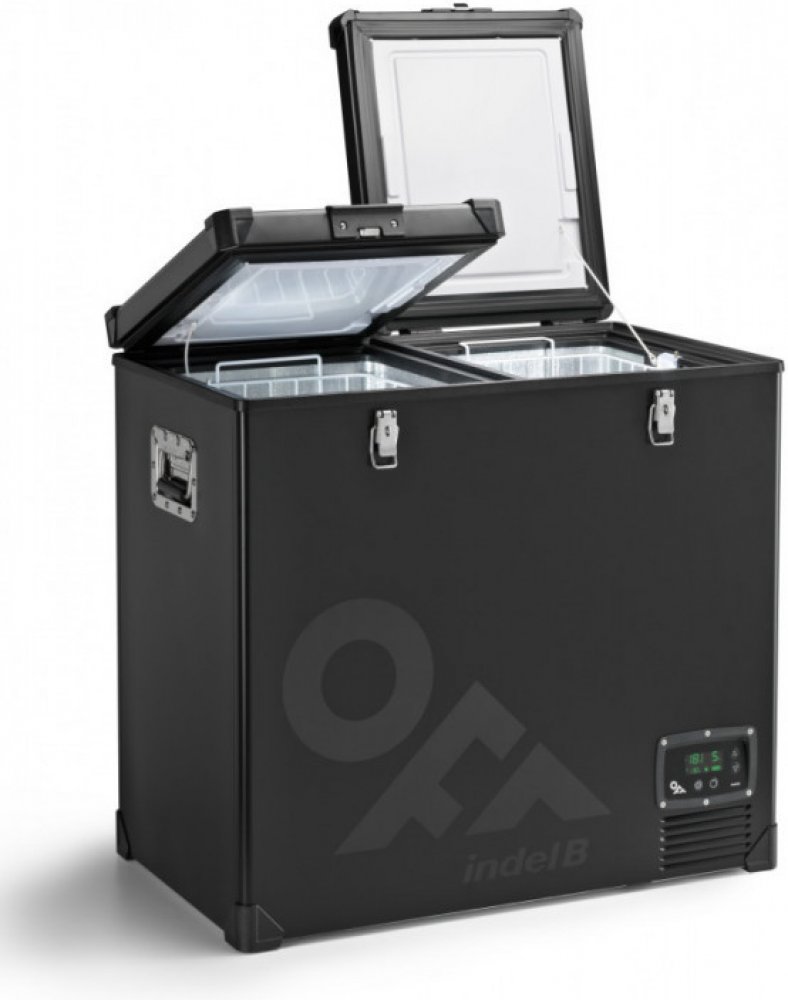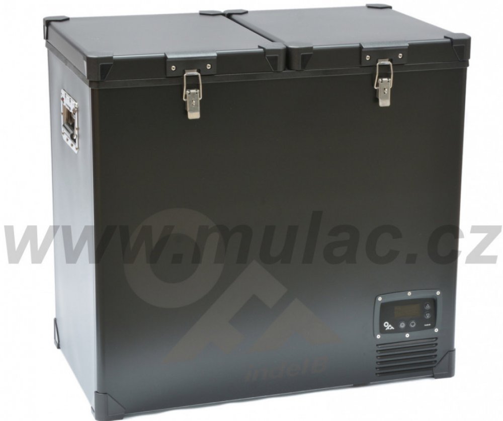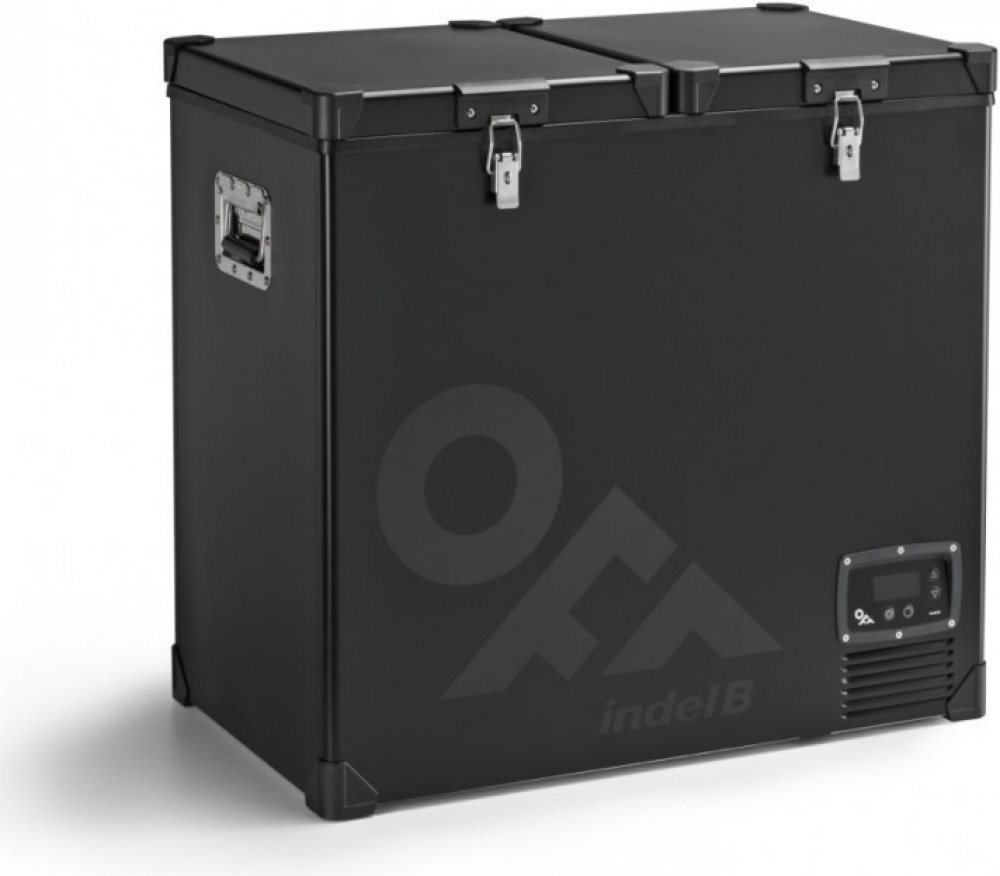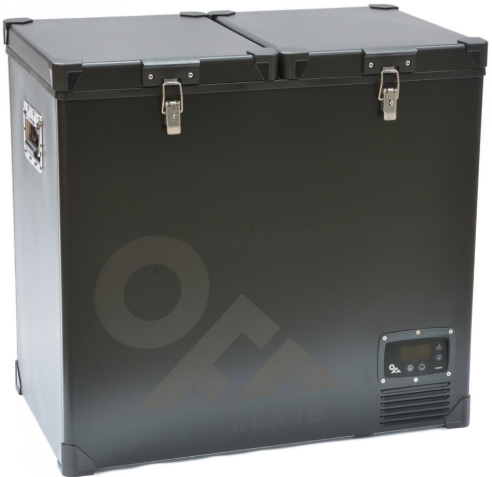 Dělená autochladnička velkého objemu pro profesionální použití. Objem 118L (65,7L/52L), napájení 12/24V + 115-240V. Masivní kovové uzávěry a madla. Vysoce výkonný kompresor SECOP BD50F.