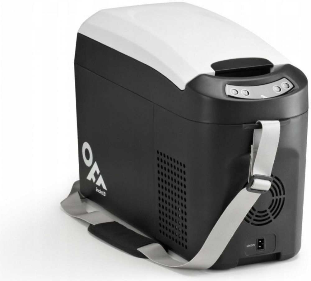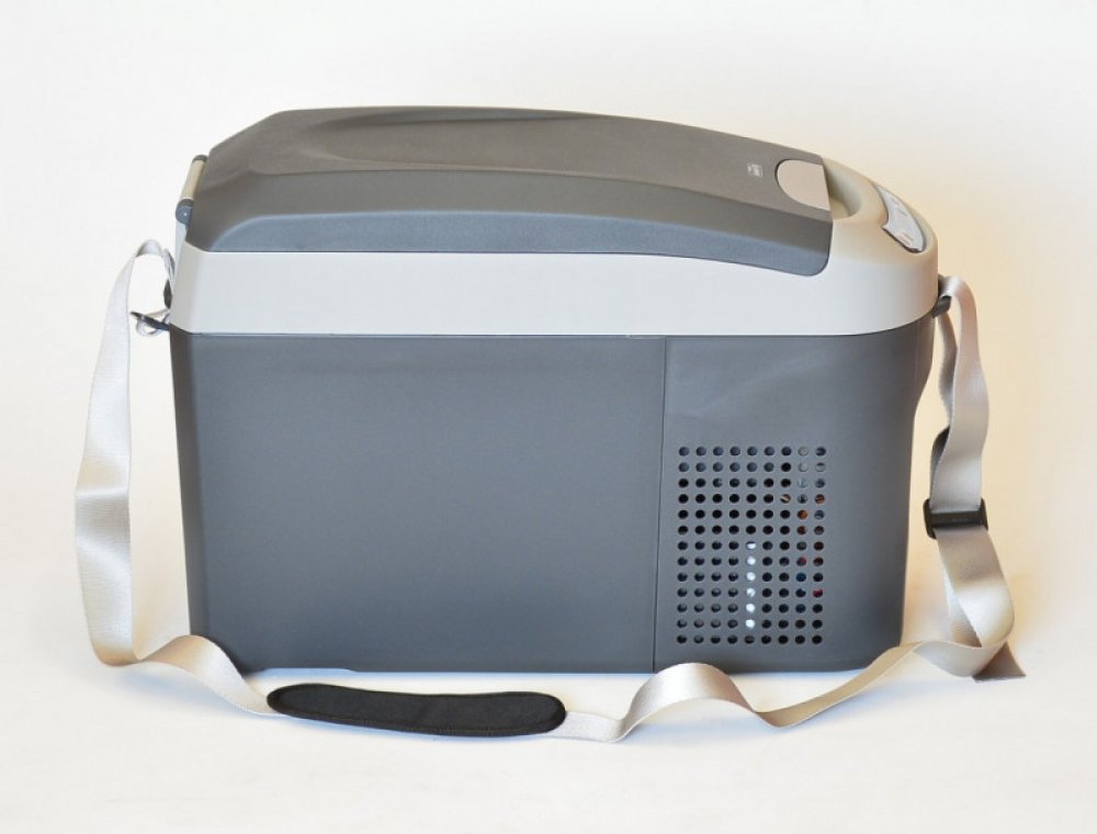 A++, objem lednice 15 litrů, napájení 12/24V, vnitřní osvětlení, display, poutání k sedadlu pásem. Ramenní popruch pro přenášení.