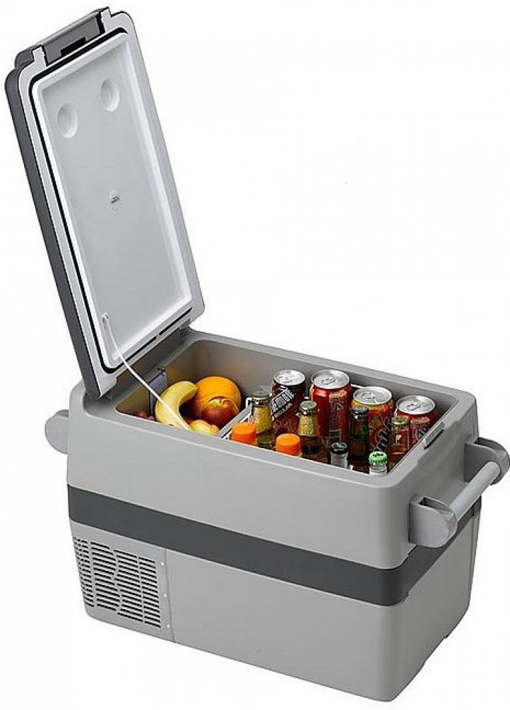 Vnitří hrubý objem 50litrů umožňuje umístění 1,5 a 2litrových lahví nastojato a pojme vše potřebné na Vaši cestu. Pro pohodlnější manipulaci je zde drátěný koš, který umožňoje vyjmutí obsahu lednice a snadné přenesení, také zabraňuje přimrzání ke stěnám. Výparník je hliníkový(perfektní tepelná vodivost, korozivzdornost, nízká váha). Vnitřní prostor je rozdělen na dva, pro hluboké zmražení (samozřejmě jde o teplotu, kterou si nastavíte) ca 39l a pro chlazení ca 9,5 l. V koši je odnímatelná přepážka viz připojené obrázky. Celý prostor je osvětlen elegantním modrým světlem.