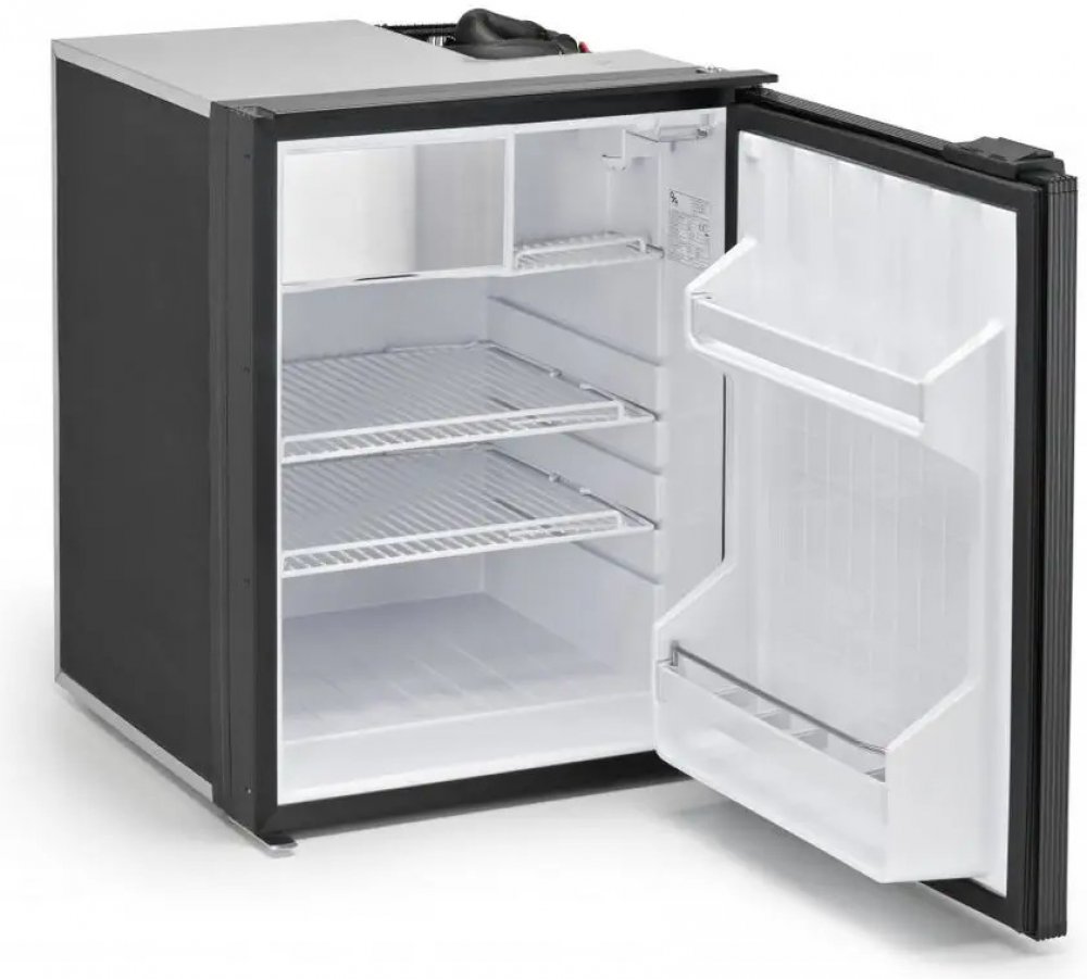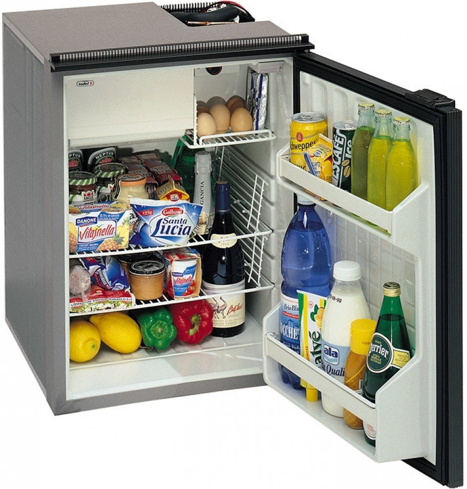 Lednička Indel B Cruise 85 o objemu 85 litrů s kompresorem SECOP 12/24V umístěným v rohu, tím se docílilo lepšího využitelnějšího vnitřního objemu.