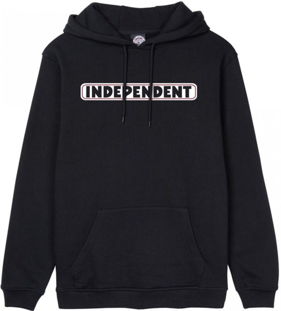 Pánská mikina od ikonické skate značky Independent v klasickém střihu s kapucí a klokankou. Potisk loga Indpendent na hrudi. Mikina Independent Bar Logo Hood black Velikost L z kategorie Independent . Pánská mikina s kapucí Independent Bar Logo Hood