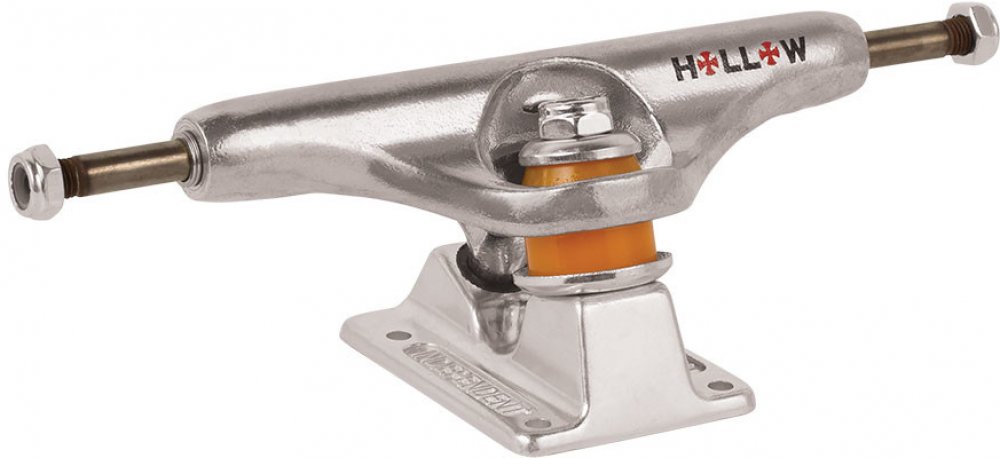 Trucky Independent Forged Hollow Nový model skatových trucků Forged Hollow od legendární značky Independent. Nejlehčí trucky, jaké kdy Independent vytvořil. Mají kovanou dutou osu a nevšedně dutý je i kingpin. To vše v kombinaci s nezničitelnou kvalitou Independent. Za tyto trucky dáme klidně ruku do ohně. Specifikace - velikost: 139 - hmotnost: 338 g - 356 T6 Aluminium hanger - Forged Aluminium b...
