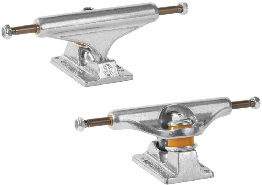 Independent jsou streetové trucky, se kterými se všichni ostatní porovnávají. Kvalita, o které se nedebatuje, perfektní rovnováha mezi nízkou hmotností a odolností. S výbornou geometrií a skvělými vlastnostmi patří k tomu nejlepšímu, co na svou skateovou desku můžete dát. Independent jsou streetové trucky, se kterými se všichni ostatní porovnávají. Kvalita, o které se nedebatuje. S výbornou geometrií a skvělými vlastnostmi patří k tomu nejlepšímu, co na svou skate desku můžeš dát. Precizní zatáčení, lepší stabilita při dopadech, méně speed wobblů a menší pravděpodobnost wheelbitů. Cena je uvedena za pár / 2ks trucků. Made in USA. Výška trucků: 55mm Hmotnost: 388g (1 truck; 144mm) Doporučení pro desky: 139mm x 7.8 - 8.2 144mm x 8.2 - 8.375 149mm x 8.375 - 8.6 159mm x 8.6 - 9.0 169mm x 9.0 - 9.5