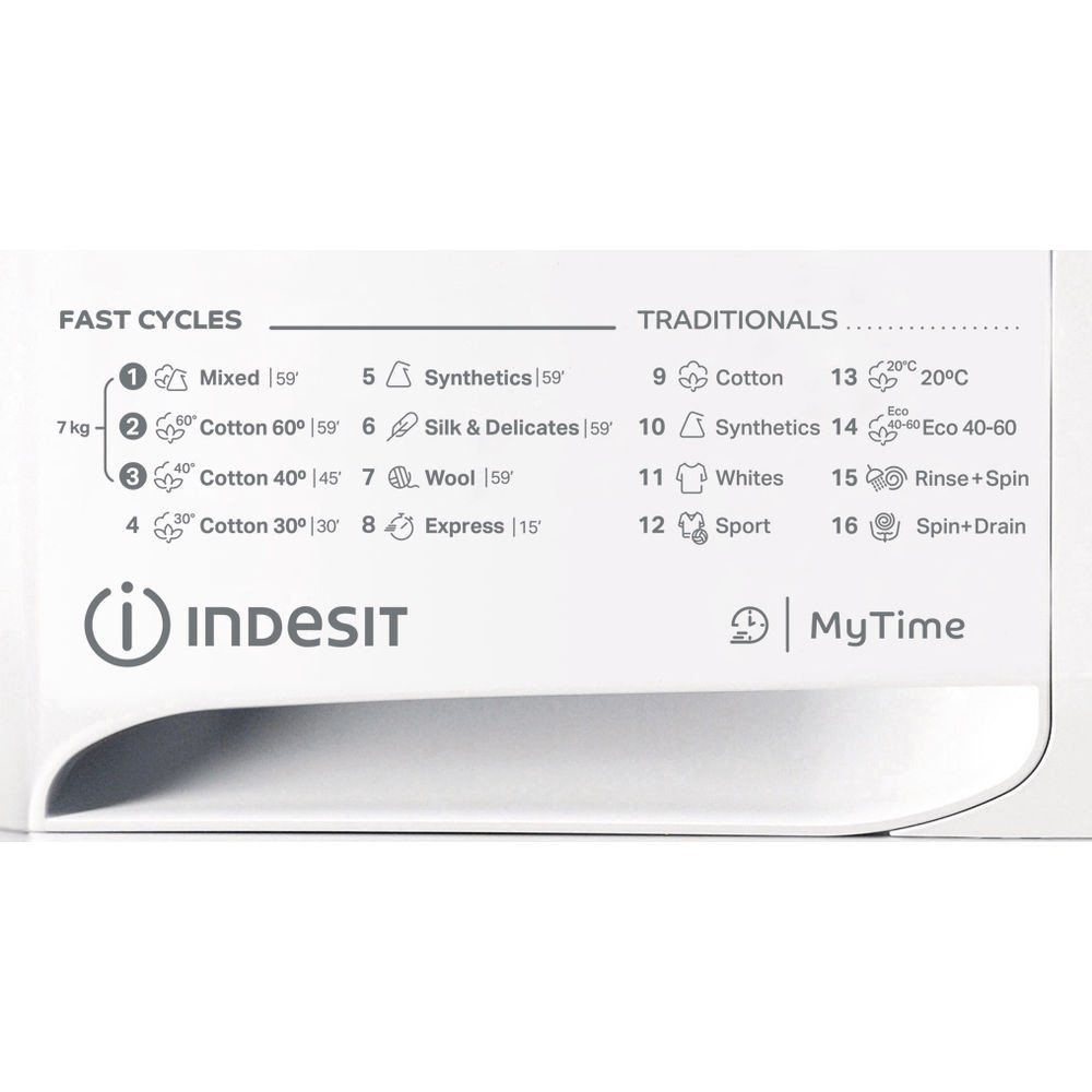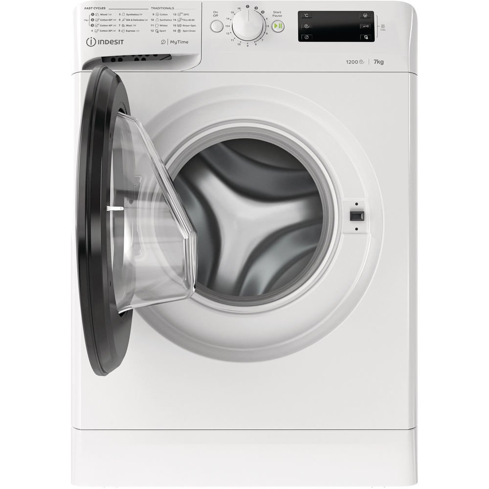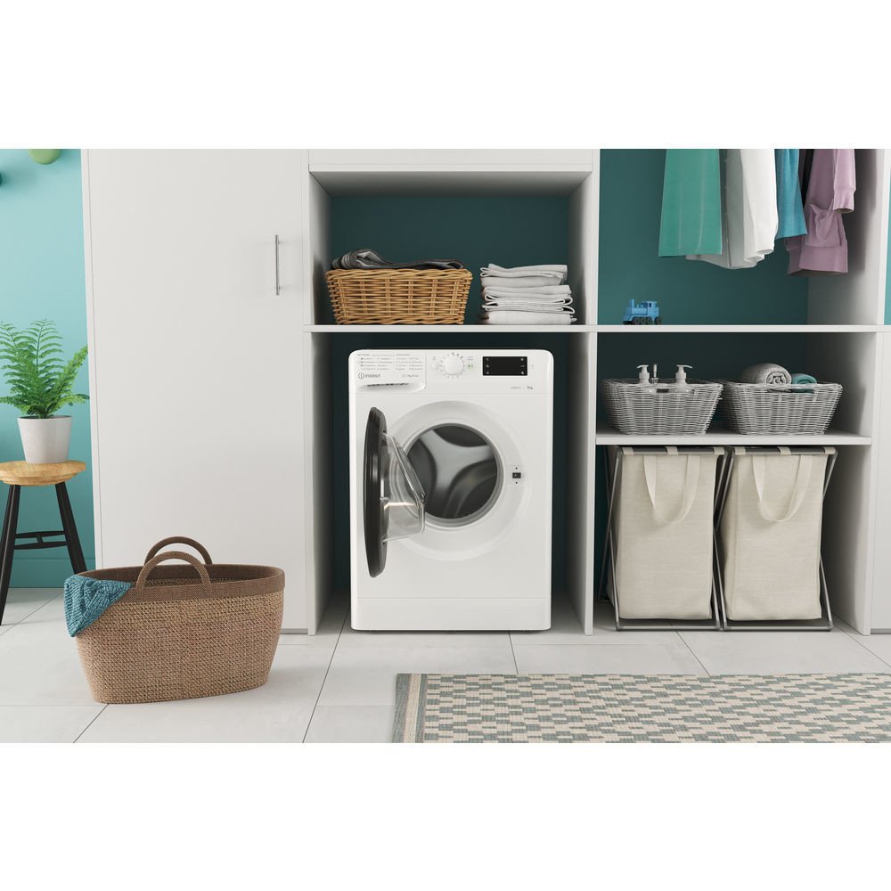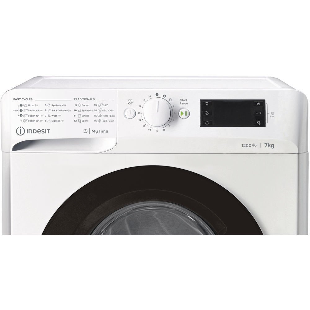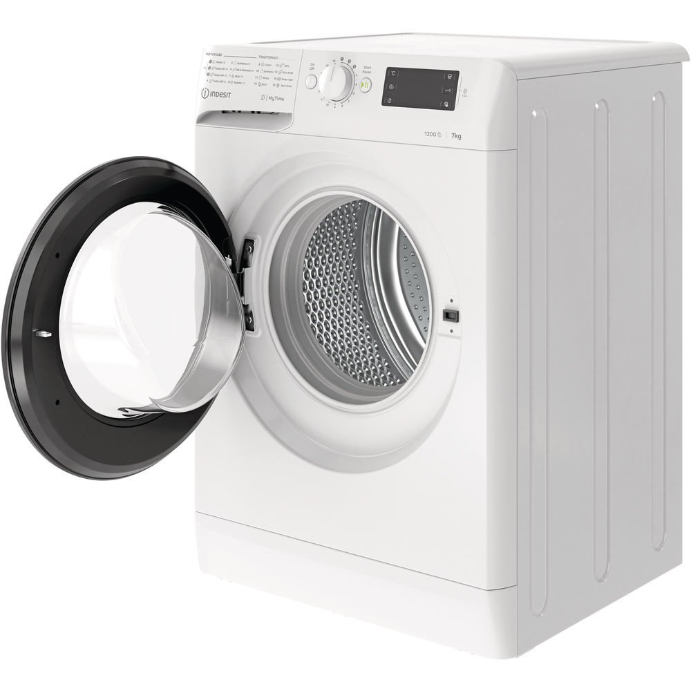 Indesit MTWE 71252 WK EE – Předem plněná pračka Indesit s funkcí odloženého startu a LED displejem. Automatické programy, kontrola vyvážení a celková kapacita 7 kilogramů prádla.