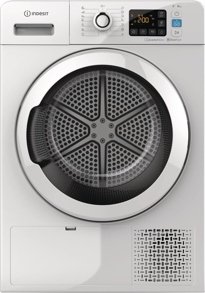 Indesit volně stojící kondenzační 8 kg A pro 3–4 osoby 65 dB 1.42 kWh C otočný knoflík s tlačítky 84.9 cm 59.5 cm 64.9 cm 44 kg 15