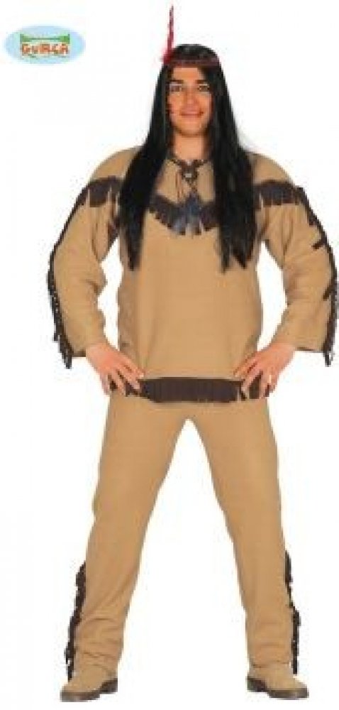 Chystáte se na tématický letní tábor nebo maškarní párty? Béžovo-hnědý indiánský kostým pro muže bude pro Vás skvělá volba. Indiánský kostým je prostě klasika, která nikdy nevyjde z módy. Na každé kostýmové párty se tak můžete proměnit v autentického indiána Apačů. Součástí kostýmu je halena, kalhoty a čelenka.