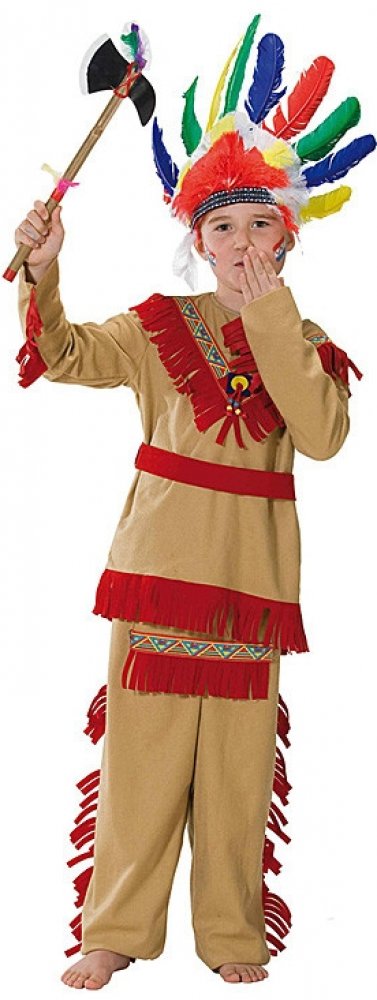 Dětský kostým indiána tvořený zdobednou halenou a kalhoty. Tomahawk a indiánská čelenka nejsou součástí kostýmu. 100% polyester.TABULKA VELKOSTÍ JE ZDE.