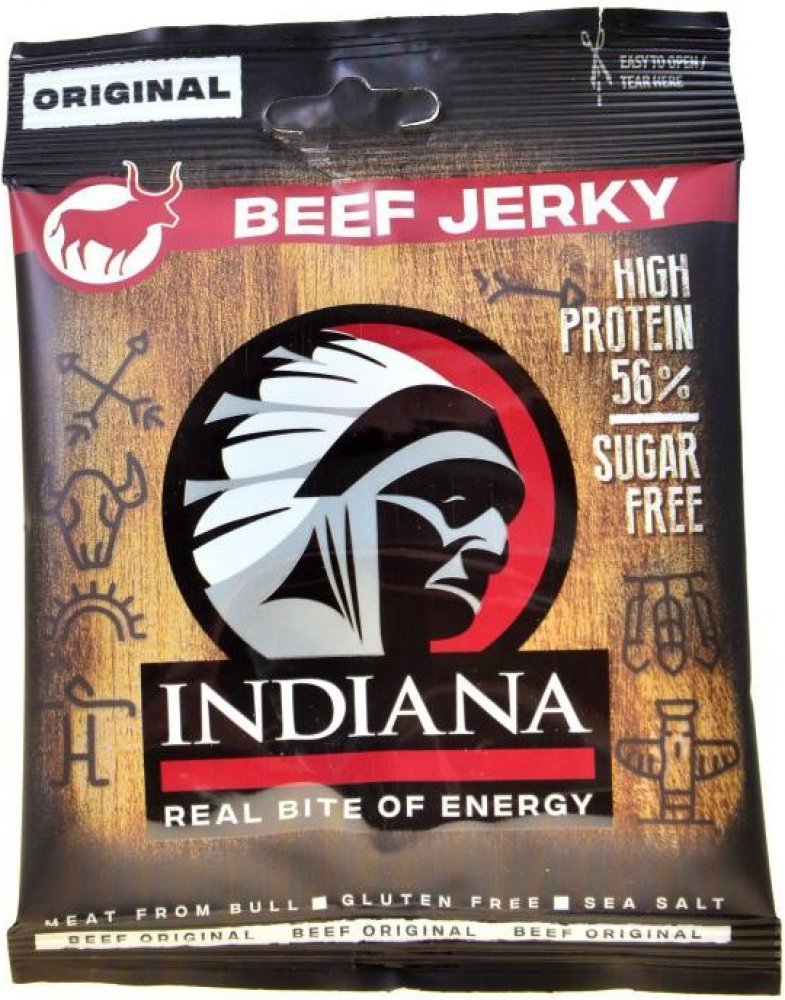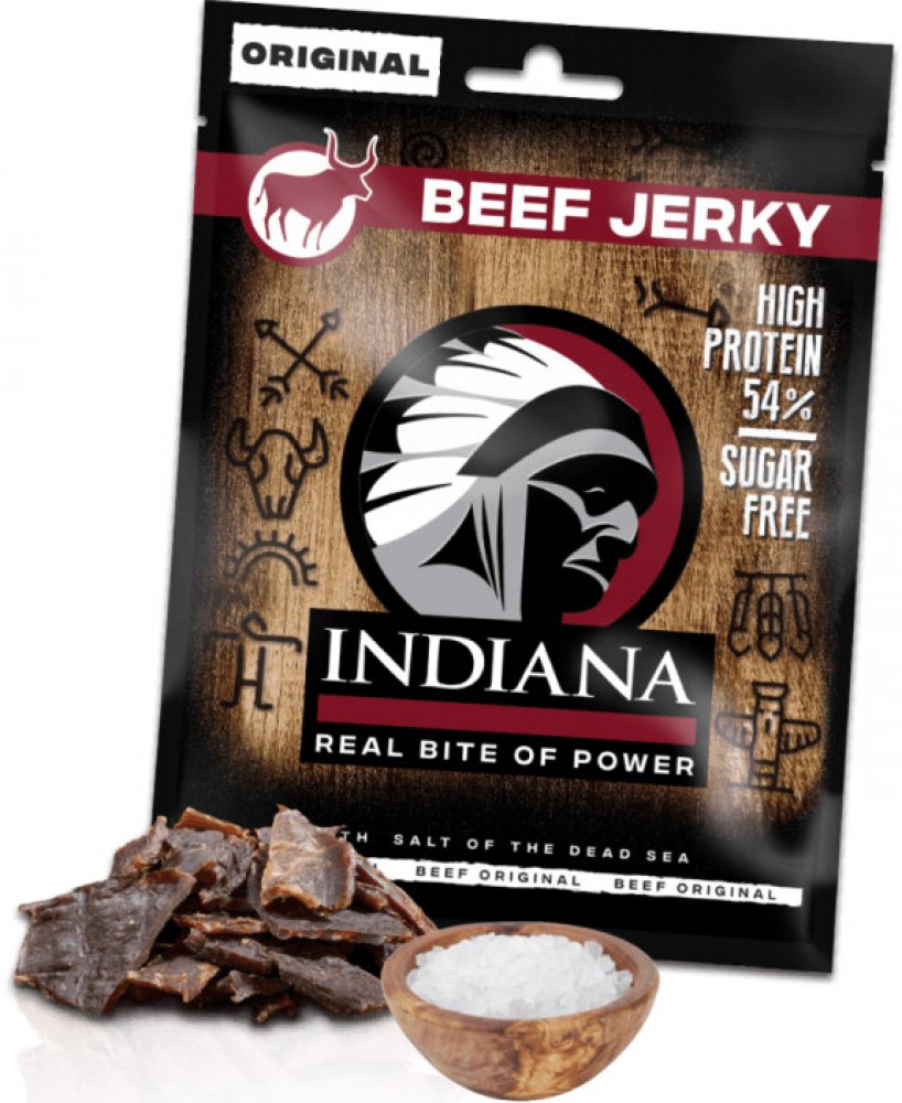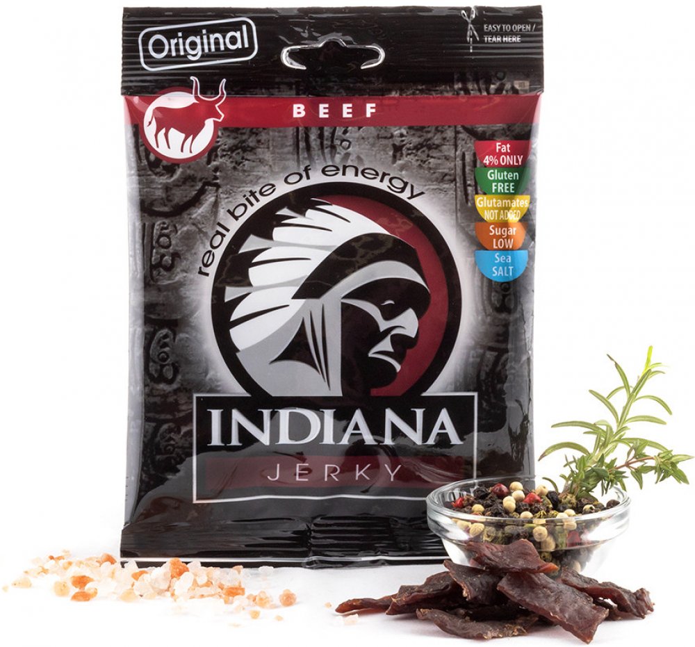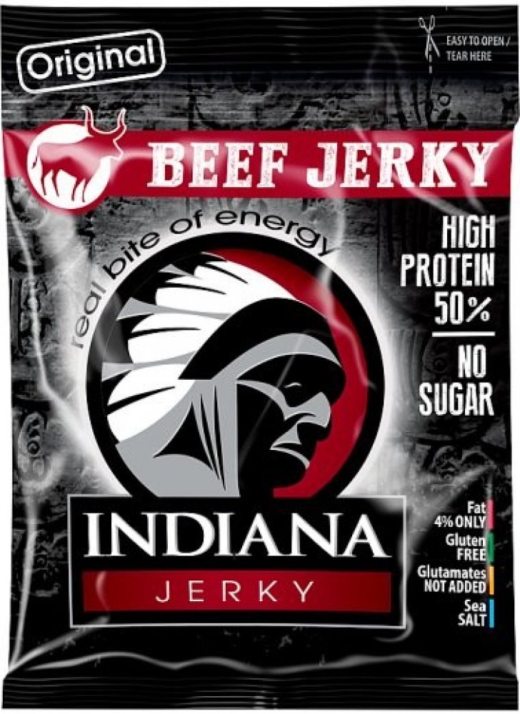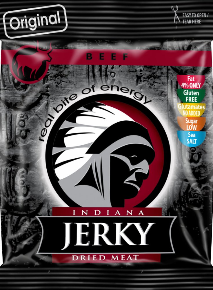 Jerky sušené maso - Jerky, kousky sušeného masa, je už po desetiletí nejpopulárnější masový snack na americkém trhu, který obsahuje velice nízké procento tuku, kalorií a je bohatý na bílkoviny. V USA je vyhledávám lidmi, kteří žijí aktivní život, sportovci, lovci, cestovatelé, členové záchranářských týmů, členové bojových jednotek a další. Vysoušení je prastará technologie uchování masa, ovoce a dalších potravin, v dlouhodobě trvanlivém stavu. Nejvíce tuto metodu využívali indiáni, kteří sušili maso na kamenech, na slunci bez jakékoliv další úpravy. Je vědecky dokázáno, že způsobem vysoušení při dodržení konstantní teploty a správného technologického postupu vyloučíme ze suroviny všechny nežádoucí bakterie, a zárodky, spolu se šťávami a tukem. Zbude nám zhruba 1 takto upraveného výrobku, který je ochucen přírodním kořením. Tyto jerky jsou vyrobeny z pouze přísně kontrolovaného masa pod vedením odborníků z vysoké školy chemicko technologické, katedra konzervace a zpracování masa. V současné době spadá do kategorie pochutin, jako jsou bramborové lupínky a pod., s tím rozdílem, že jsou zdravé a chutné. Použití 60 g Jerky nahradí požití hovězího steaku o hmotnosti 240 g se všemi prospěšnými nutričními hodnotami. Jrky se vyrábí v masokombinátu Planá, který jako jeden z prvních u nás splňoval podmínky pro zpracování masných výrobků pro vstup do EU. Je tedy vyráběn za nejvyšších hygienických opatření. Doporučujeme jej jako náhradní příjem proteinů v tělu přijatelné formě.
