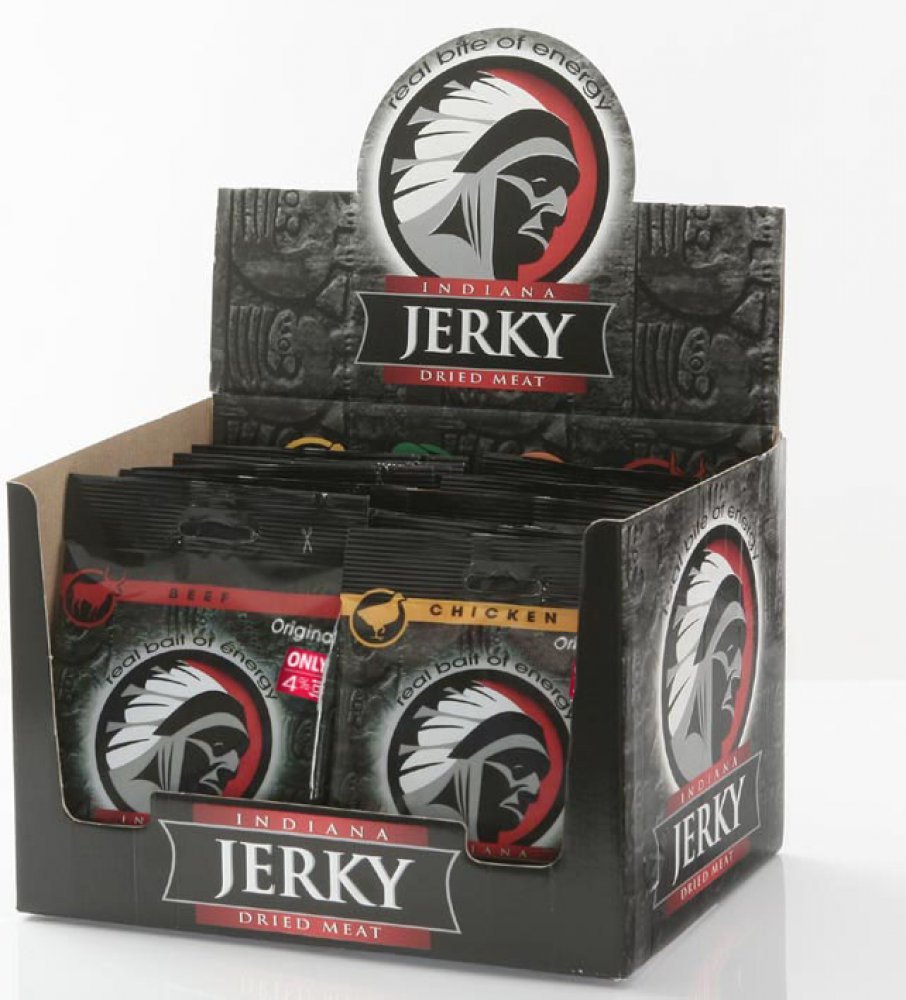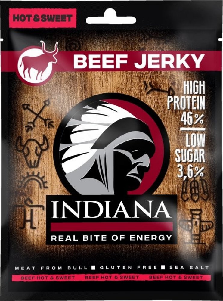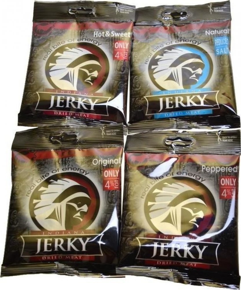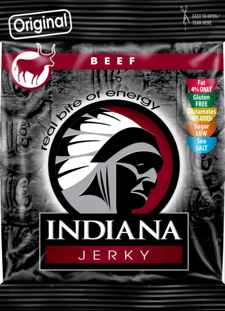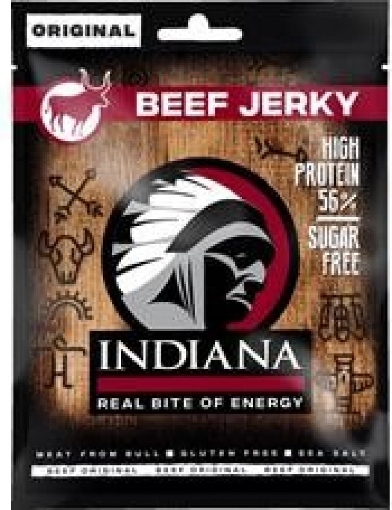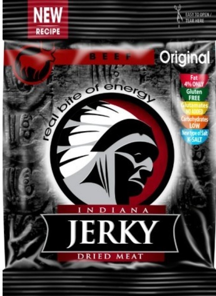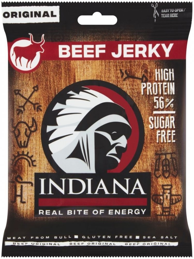 Sušené hovězí maso zauzené. Jste připraveni na šťavnaté hovězí? Tohle je nejoblíbenější jerky bledých tváří – náčelníkova originální receptura s nezaměnitelnou evropskou slanou chutí masa. Stačí otevřít sáček a zakousnout se! Indiana Jerky Vám dodá pořádný kus energie při zachování minimální hmotnosti.