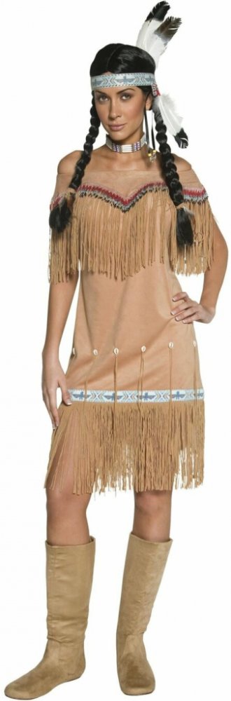 Přírodní barvy, korálky, peříčka a třásně. To jsou věci, které k indiánům neodmyslitelně patří. Než se ale ozdobíte těmito drobnostmi, musíte mít ten správný outfit. Karnevalový kostým indiánky je v hnědých barvách a je ozdoben třásněmi. Na sukni je modrý pásek s indiánskými motivy.