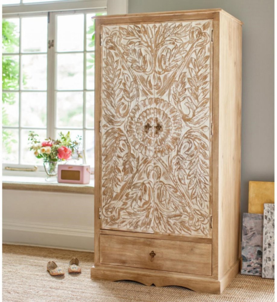 Tato masivní šatní skříň z indického manga nabízí šatní tyč, police a šuplík. Objevte naši rozmanitou nabídku šatních skříní a vyberte si kvalitní kus nábytku pro vaši ložnici. Navštivte náš showroom a prohlédněte si další nábytek z mangového a palisandrového dřeva (Sheeshame).