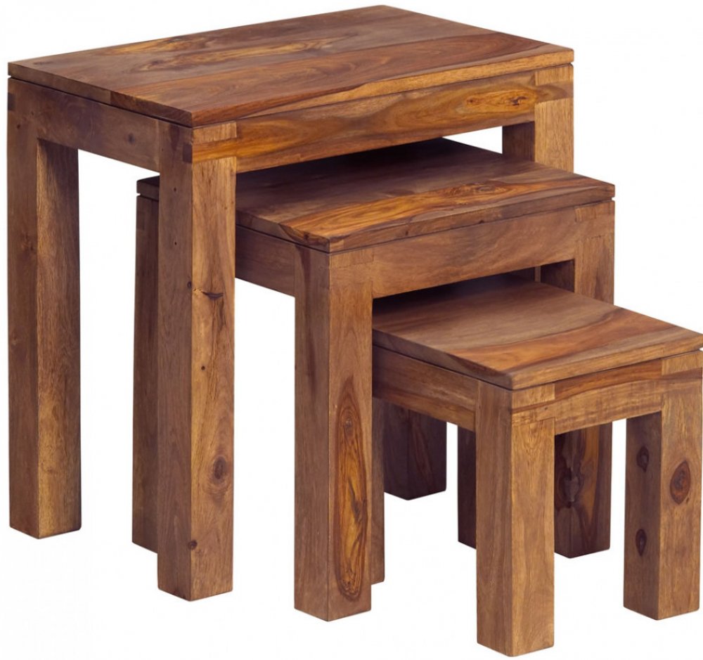 Odkládací stolky z masivu 3 ks jsou vyrobeny z indického palisandru. Velikosti: 55x55x40 cm, 47x43x40 cm, 39x31x40 cm (ŠxVxH). Odkládací stolky z masivu, které máme skladem, si můžete prohlédnout v našem showroomu. Indický koloniální nábytek palisandr (sheesham) masiv.