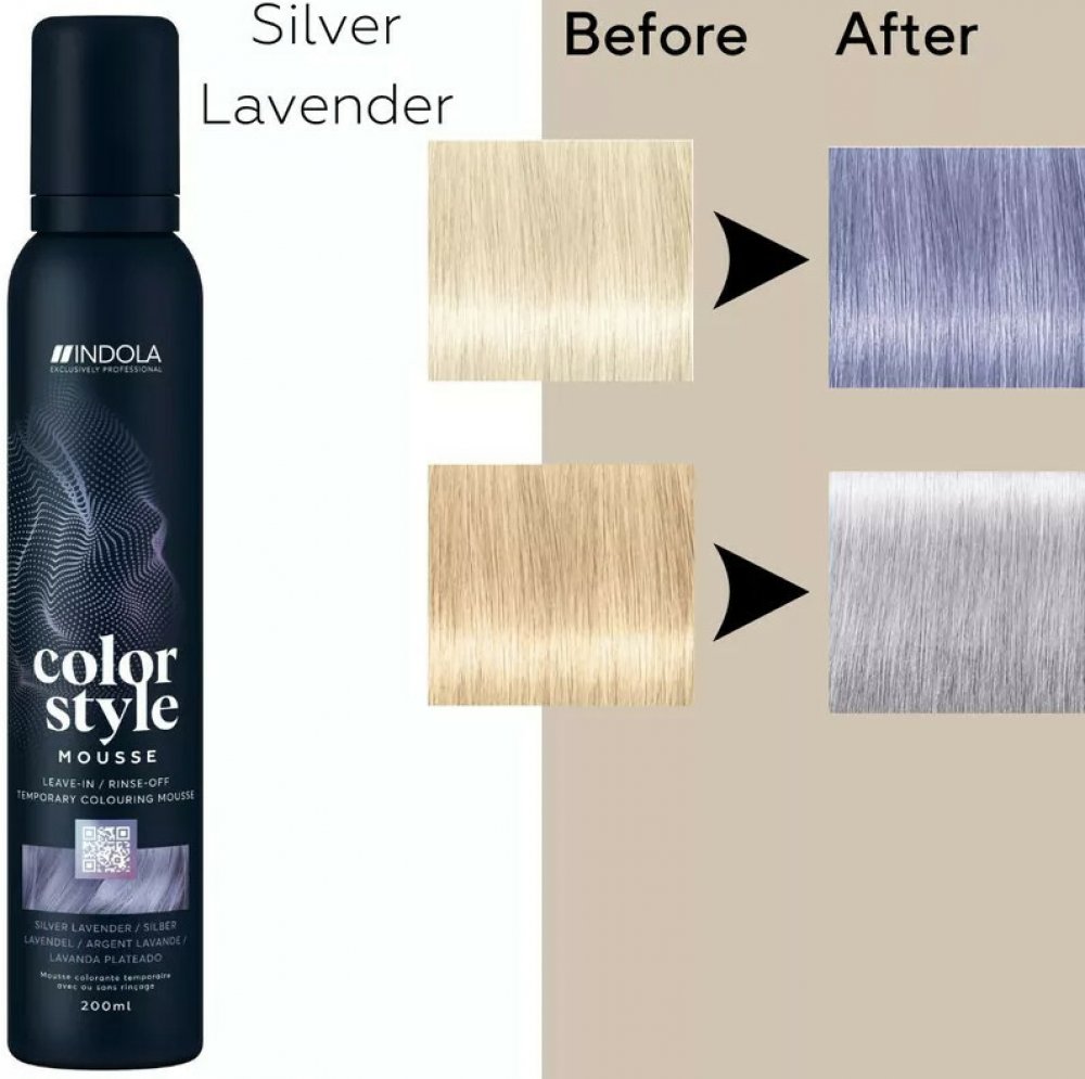Tónovací stylingovápěna, barevné tužidlo či semi-permanentní neoplachovací barva Indola ColorStyle Mousse Silver Lavender znamená barvu, styling a péči v jednom kroku. Vynikajícína rychlé oživení barvy, opravu nechtěného odstínu nebo předpigmentaci. Složení je šetrné k vlasům a pomáhá chránit před poškozením teplem během stylingu. Pěna vydrží až 4 umytí a umožňuje časté změny odstínu.