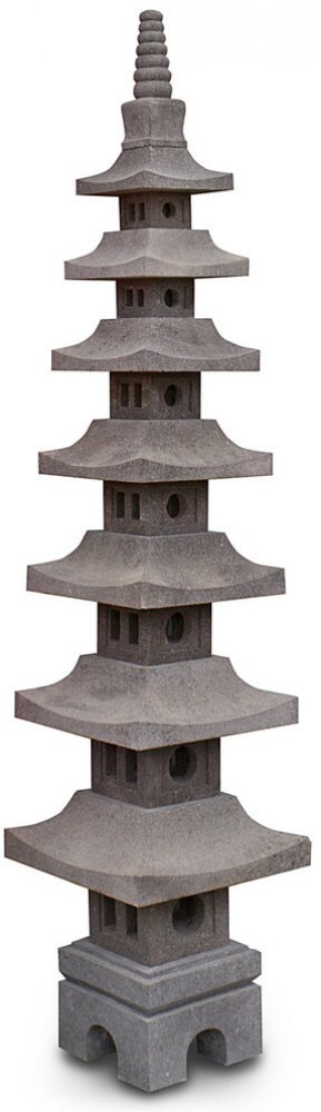 pagody se označují také jako stůpyčasto se umisťují před budhistické kláštery, nebo svatyně a do jejich okolíjejich nezvyklý vzhled a odvážná konstrukce oslavuje život a učení Buddhy a východní nauky obecněje-li to možné, v zahradě se umisťují na místa s výhledem na hory, či kopcestupně, nebo patra pagod, mimo budhistické symboliky, mají i svůj architektonický důvodtyto konstrukce výborně odolávají častým zemětřesením v zemích svého původu (Japonsko, Čína a Korea)počet pater je většinou lichý, ale existují i výjimky se sudým počtem stupňůnejhornější díl (Höju) obvykle znázorňuje květ lotosu, jako Buddhův symbol a celou stavbu korunujeLampa je vyrobena z lávového kamene sopečného původu, který dobře snáší naše klimatické podmínky a je možno je ponechat v zahradě celoročně.Jedná se o přírodní produkt, barva, tvar a velikost produktu se mohou lišit.