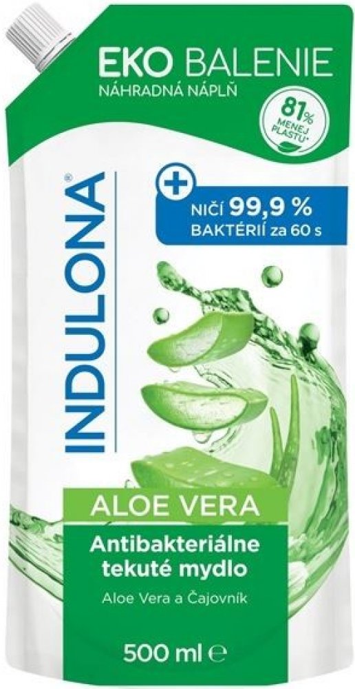 Indulona Antibakteriální tekuté mýdlo Aloe Vera s aloe vera a čajovníkem bylo speciálně vyvinuto tak, aby zničilo 99,9 % bakterií (včetně Salmonella) a zabránilo jejich šířeníObjem 500 ml
