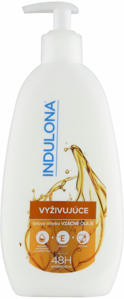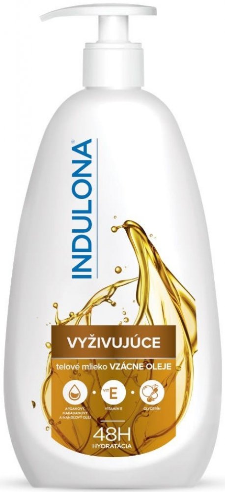 Tradiční česká značka INDULONA představuje každodenní péči o vaši pokožku v podobě vyživujícího tělového mléka ze vzácných olejů. Vyživující tělové mléko obsahuje arganový, makadamový a mandlový olej pro zajištění hydratace a výživy. Díky obsahu kyseliny hyaluronové je při každém ošetření pleť hydratována. Přítomný glycerin rovněž zvyšuje úroveň hydratace pokožky. Pokožka je pravidelnou aplikací prokrvená, změkčená a jemná na dotek. Mléko se snadno vstřebává a nezanechává pleť mastnou. Indulona podléhá dermatologickému testování a je vhodná pro všechny typy pokožky.