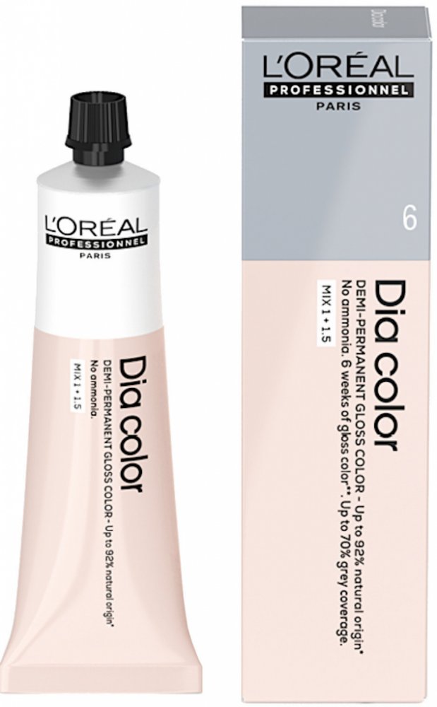 Profesionální přeliv na vlasy bez amoniaku Loréal Professionnel Dia color propojuje přírodu a technologii Melanin Gap Filler s fantastickým výsledkem. Nabízí až 92 % složení přírodního původu, včetně hloubkově pečujících složek, jako je bambucké máslo, které vlasům během barvení poskytuje maximální výživu a podporuje jejich lesk. Propanediol, glycerin a kyselina hyaluronová se starají o hloubkovou hydrataci vlasových vláken. V průběhu času ubývá melaninu z vlasového vlákna, proto jsou vlasy matné a bílé. Technologie Melanin Gap Filler perfektně napodobuje přírodní barvu a polohu melaninu ve vlasovém vláknu, aby dokonale vyplnila mezery po ztraceném melaninu. Dia color dodává přirozeně matným vlasům 3x větší lesk, který vydrží až 6 týdnů. Je ideální pro první barvení přírodních vlasů, vytvoření efektu tón v tónu, ale také pro až 70% přirozené krytí prvních bílých vlasů. Krémová textura umožňuje snadné míchání, aplikaci i oplachování. Oxidační krém není součástí balení, je nutné ho zakoupit samostatně!Balení: 60 mlOdstín: 6 tmavá blond (přírodní odstín)Poměr míchání: 1:1,5 (1 díl barvy + 1,5 dílu oxidačního krému)Doba působení: 20 minutAktivní látky a technologie:Technologie Melanin Gap Filler - napodobuje přírodní barvu a polohu melaninu ve vlasovém vláknu, aby dokonale vyplnila mezery po ztraceném melaninu, tím vlasům dodává oživení a leskBambucké máslo - poskytuje vlasům maximální výživu, hydrataci a podporuje jejich leskPropanediol - složka získávaná z obnovitelných rostlinných olejů nebo kukuřice, dodává vlasům hydrataciGlycerin - přírodní složka používaná pro dodání hydratace vlasům a vyhlazení vlasového vláknaKyselina hyaluronová - hydratuje suché a poškozené vlasy, chrání je před další ztrátou hydratace, brání lámání a třepení vlasů a dodává leskVlastnosti:- přeliv na vlasy bez amoniaku- až 92 % přírodního složení- napodobuje přírodní barvu- vyplňuje mezery po ztraceném melaninu- dodává vlasům 3x větší lesk až na 6 týdnů- ideální pro první barvení přírodních vlasů- vytváří efekt tón v tónu- až 70% krytí bílých vlasů- krémová texturaVýběr oxidačního krému:1,8 % (6 vol.) - pro ztmavení o 1 výšku tónu, barvení tón v tónu a světlé výšky tónu, jemný barevný výsledek2,7 % (9 vol.) - pro barvení tón v tónu, ztmavení, standardní barevný výsledek4,5 % (15 vol.) - pro zesvětlení o 1 výšku tónu, krytí bílých vlasů, intenzivní barevný výsledekPříprava a míchání:1. V případě krytí bílých vlasů je nutné použít přírodní odstín nebo jej přimíchat k odleskovému odstínu. Pro krytí 30-50 % bílých vlasů použijte přírodní odstín nebo smíchejte 1/4 přírodního odstínu (např. 6) a 3/4 odleskového odstínu (např. 6.82). Pokud budete krýt 50-70 % bílých vlasů, použijte přírodní odstín, nebo smíchejte 1/2 přírodního odstínu a 1/2 odleskového odstínu.2. V nekovové misce nebo aplikátoru smíchejte barvu a vybraný oxidační krém, dokud nevznikne homogenní směs. Pro precizní aplikaci zvolte misku a štětec, pro rychlou aplikaci aplikátor.První aplikace - přírodní vlasy:1. Naneste směs štětcem nebo aplikátorem na suché vlasy, dbejte na prosycení každého pramene.2. Nechte působit 20 minut, dobu působení začněte měřit až po dokončení aplikace.3. Jemně emulgujte.4. Důkladně opláchněte a umyjte vlasy šamponem Metal Detox.Další aplikace - dobarvení odrostů:1. Naneste směs štětcem nebo aplikátorem na odrosty a začněte počítat dobu působení 20 minut.2. Pokud je barva vlasů velmi vymytá, ihned aplikujte směs i do délek. 3. Pokud je barva vlasů středně vymytá, aplikujte směs do délek 10 minut před koncem doby působení.4. Pokud je barva vlasů mírně vymytá nebo chcete oživit odlesk, aplikujte směs do délek 5 minut před koncem doby působení. 5. Po uplynutí 20 minut od nanesení směsi na odrosty vlasy jemně emulgujte.6. Důkladně opláchněte a umyjte vlasy šamponem Metal Detox.Tip: Použijte odstín Clear pro zjemnění jakéhokoliv odstínu nebo samostatně pro dodání zářivého lesku Vašim vlasům!Upozornění:1. Jedná se o profesionální přeliv na vlasy, který je určený pro použití v kadeřnických salonech.2. Přeliv může způsobit alergické reakce. Dočasné tetování černou hennou může riziko alergie zvýšit. Nebarvěte si vlasy, pokud máte vyrážku na obličeji nebo citlivou, podrážděnou a poškozenou pokožku hlavy, pokud jste již v minulosti zaznamenali alergickou reakci po barvení vlasů nebo pokud jste v minulosti zaznamenali reakci na dočasné tetování černou hennou. Před barvením proveďte test citlivosti.3. Výrobek není určen k používání pro osoby mladší 16 let.4. Použijte pro aplikaci vhodné ochranné rukavice.5. Zamezte styku s očima, při zasažení očí je okamžitě důkladně vypláchněte vodou.6. Nepoužívejte přeliv k barvení řas a obočí.