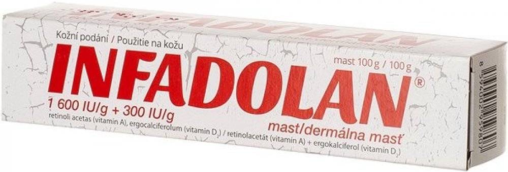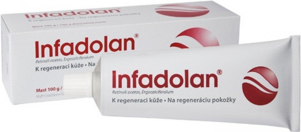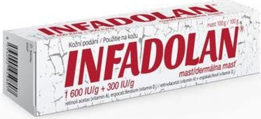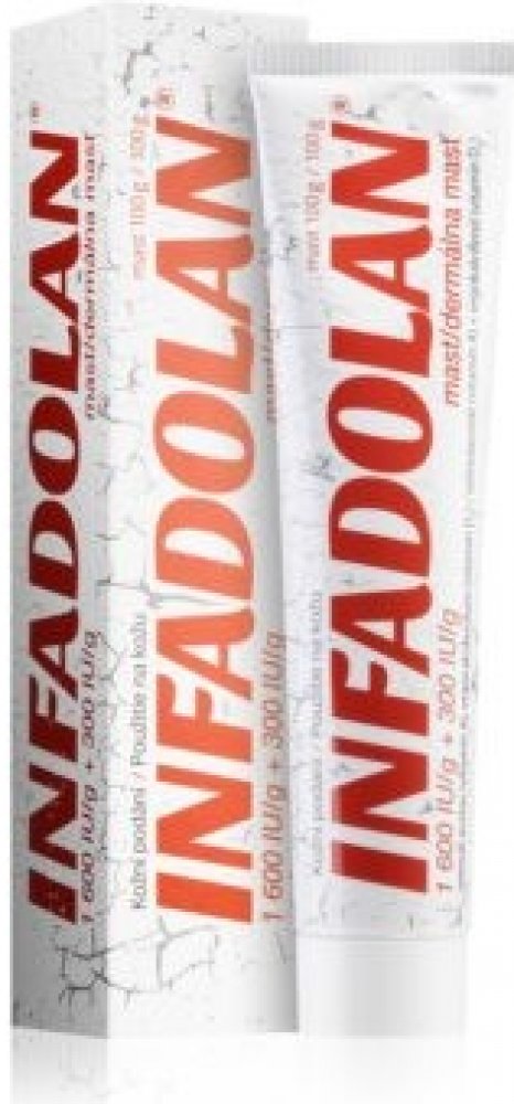 Infadolan je mast pro zevní použití obsahující vitamin A a vitamin D2 v bezvodém masťovém základu, vhodná k urychlení hojení a obnovy pokožky na postiženém místě.