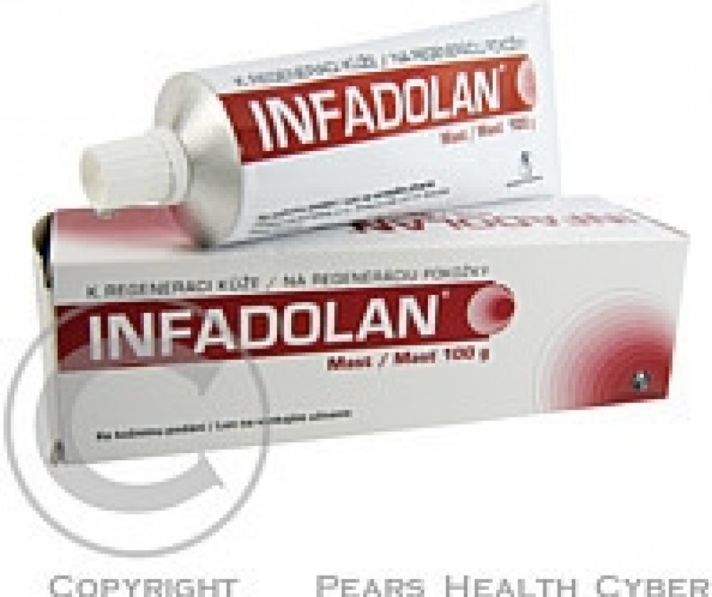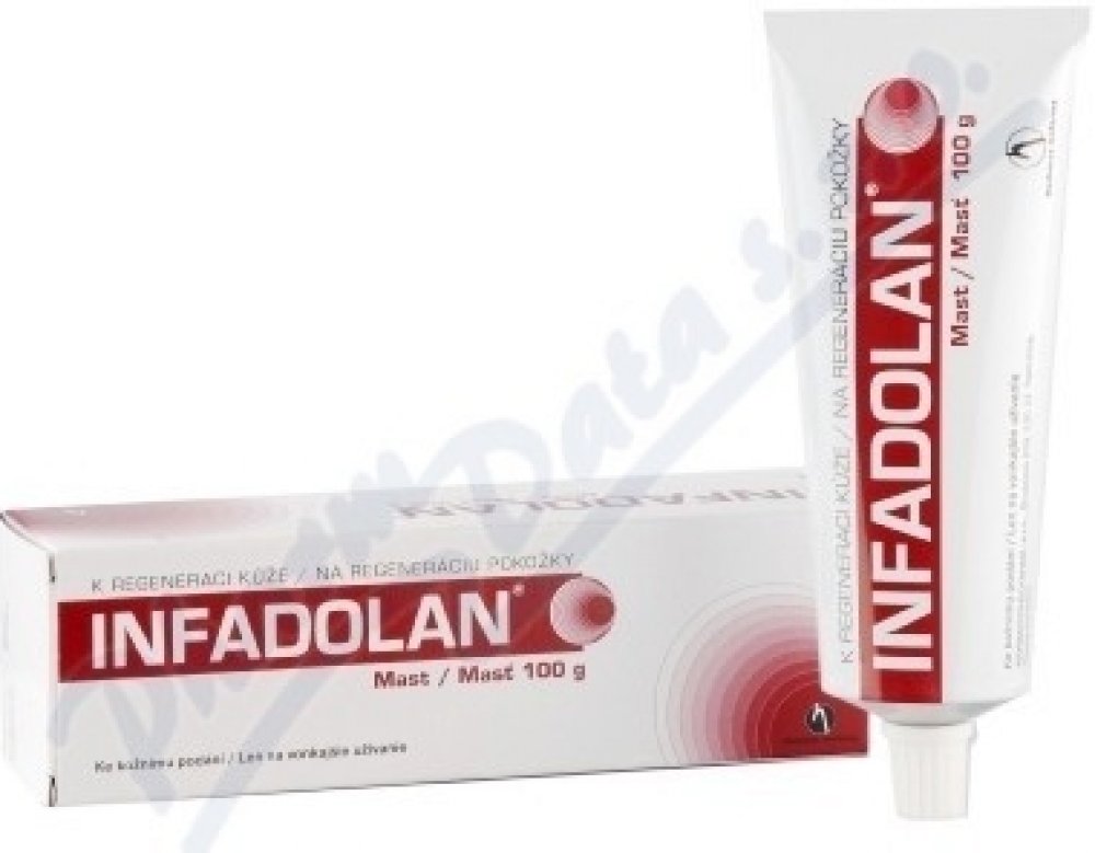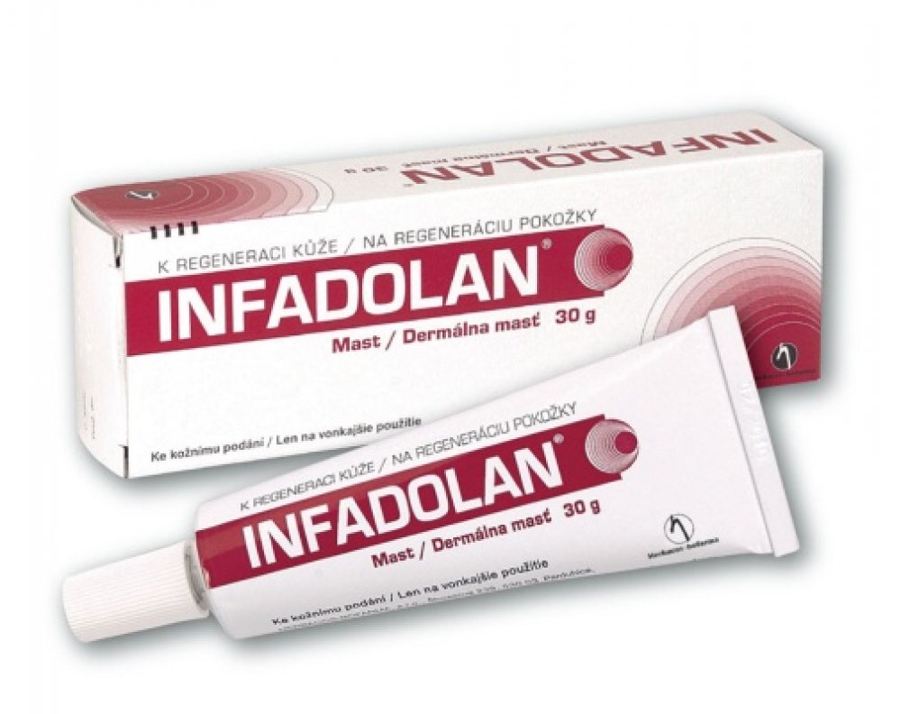 Infadolan je mast s vitaminy A a D2, která urychluje hojení a obnovu pokožky. Používá se na drobné neinfikované rány, oděrky, popáleniny I. stupně, suchou popraskanou kůži a k prevenci opruzení. Je vhodný pro všechny věkové kategorie včetně novorozenců, těhotných a kojících žen. Nanáší se v tenké vrstvě 1-3× denně.