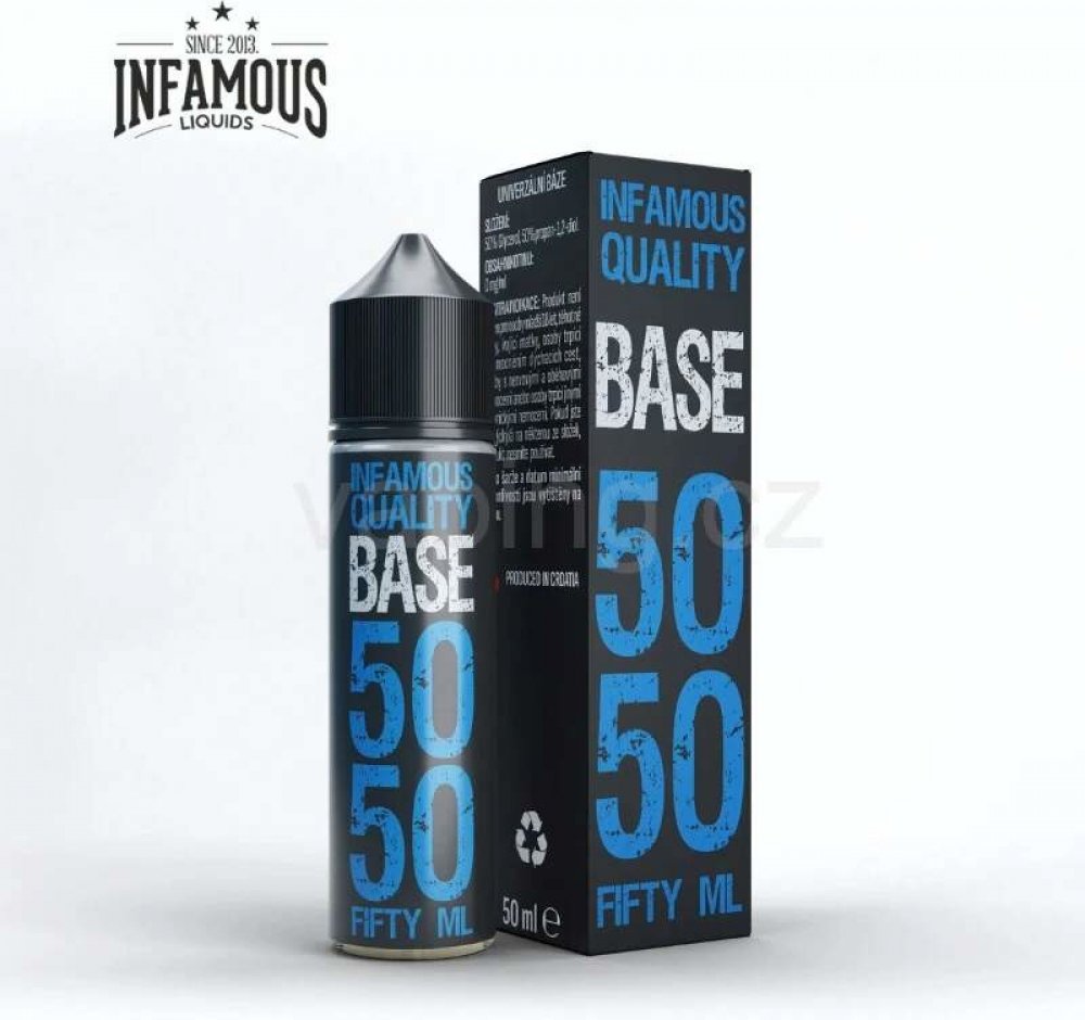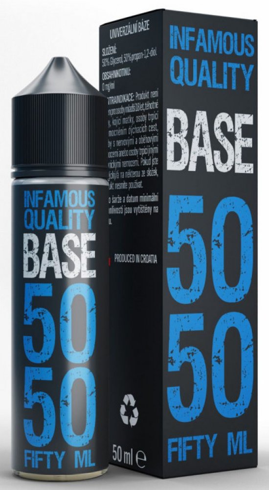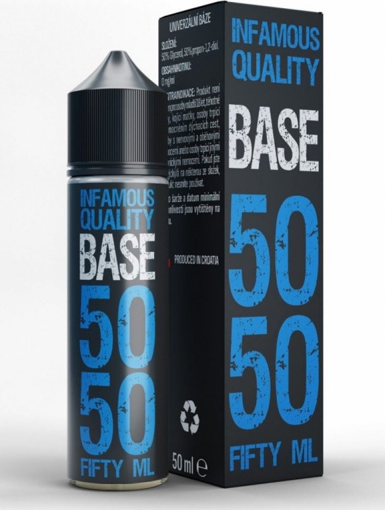 Při výrobě bází Infamous je dbáno na dodržení nejpřísnějších standardů a použití pouze nejlepších možných ingrediencí farmaceutické kvality, výsledná báze je prvotřídním produktem, poskytující skvělý základ pro míchání vlastních e-liquidů.