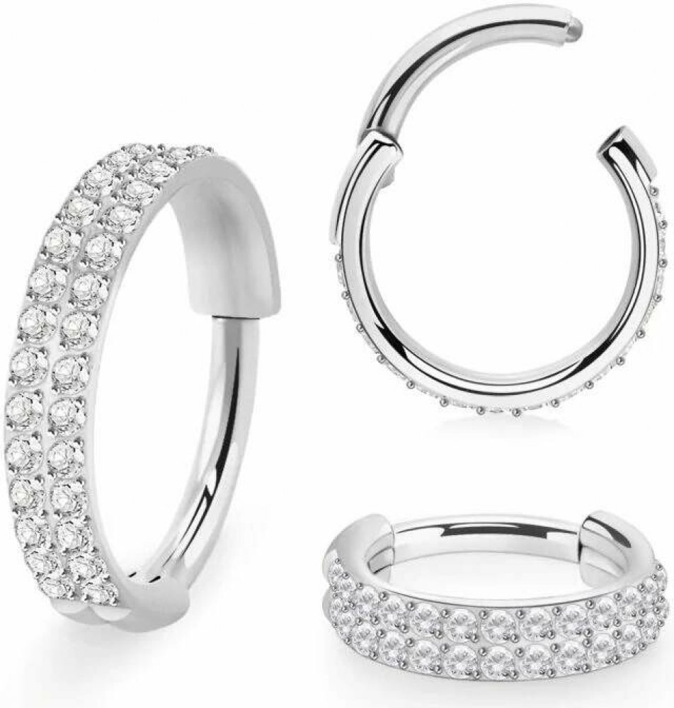 Luxusní kroužkový piercing do nosu s dvojitou řadou krystalů – elegantní šperk z oceli