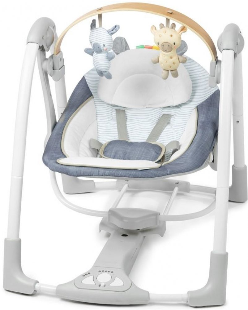 Přenosná houpačka Ingenuity Swing'n Go - Chambray představuje úžasný dárek pro stylového rodiče (a dítě)!
