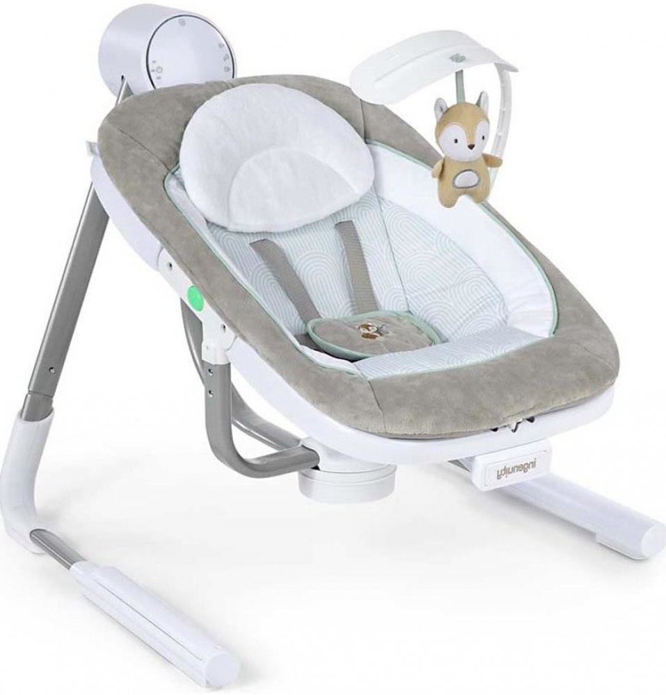Díky kompaktnímu skládacímu designu je houpačka snadno přenosná a snadno se skladuje. Houpačka je vybavena 5- bodovým pásem a protiskluzovými nožičkami pro bezpečnost a snadno se udržuje v čistotě. Neutrální design a luxusní funkce usnadní den rodičům a dopřejí odpočinek děťátku.