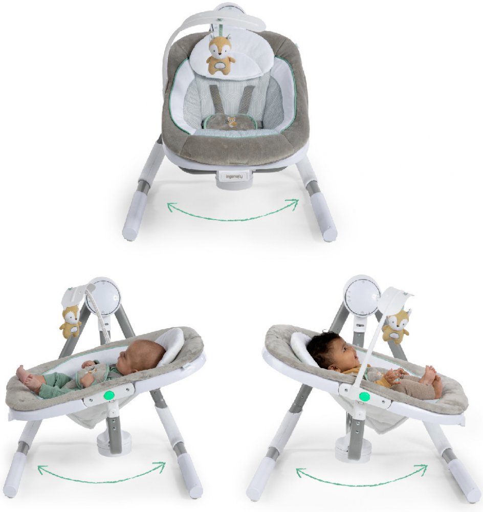 - Přeměna z houpačky na vibrační sedadlo pro více možností uklidnění dítěte.
