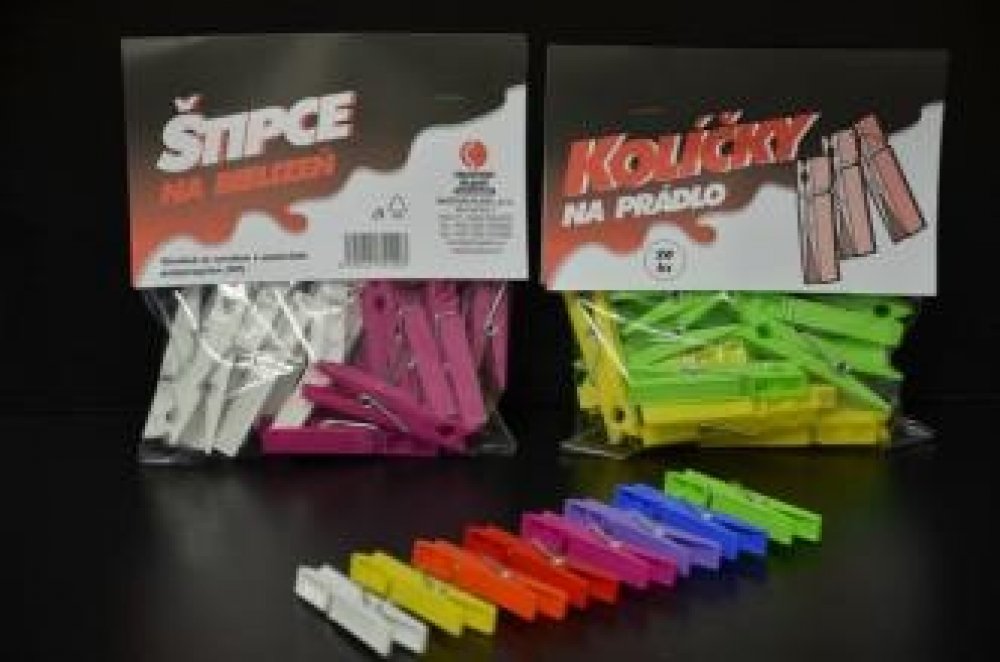 Kvalitní české plastové kolíčky. Barvy dle aktuální nabídky na naší prodejně.